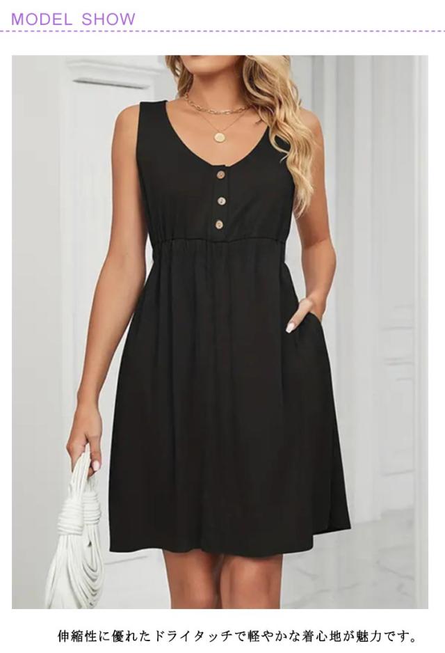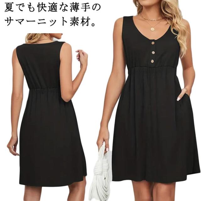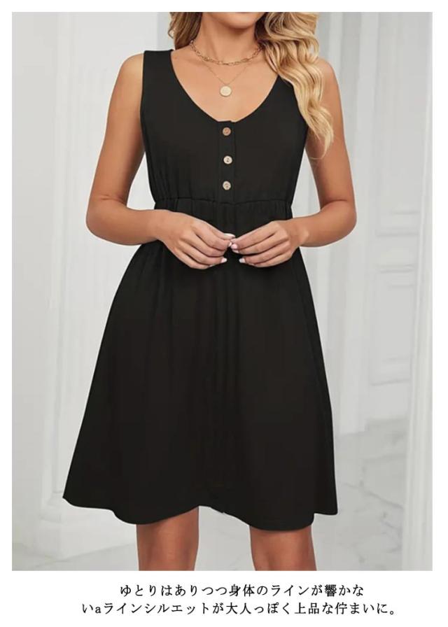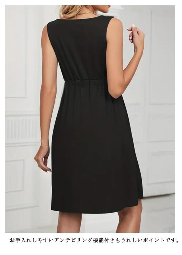 ワンピース 20代 黒 ノースリーブ ブラック レディース 40代 無地 ワンピース アンチピリング 30代 フレア Uネック ワンピース シンプル