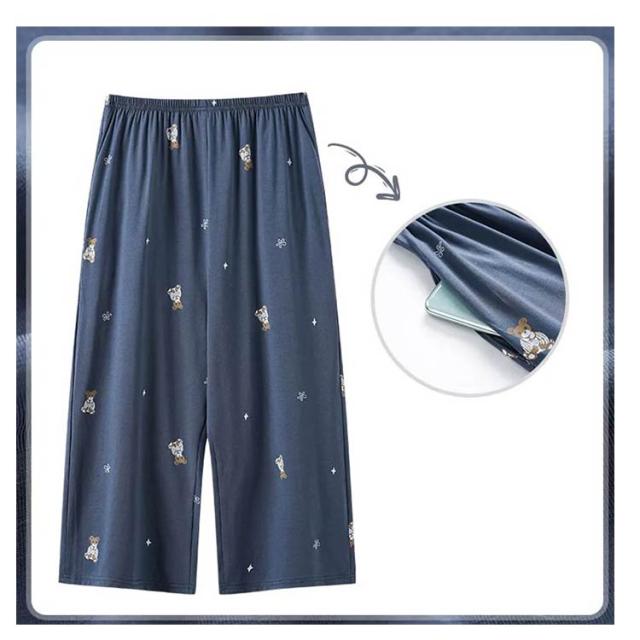 七分丈 レーヨン ポケット付き レディース ウエストゴム リラックスパンツ ボトムス クロップドパンツ ルームウェア 下 ステテコ 総柄 ゆるパンツ 涼しい 涼感 ステテコ