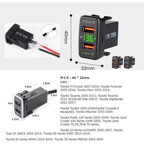 YOBIS シガーソケット 電源ソケット QC3.0カ Dデジタル電圧計付き 互換性 forトヨタ車系適用/対応