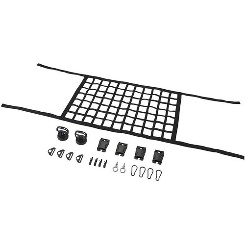 スタイル:ルーフネット EE-232 | パターン名(種類):単品 荷物の重さで垂れ下がらない伸縮性のないPPベルト仕様。狭い限られた荷室の天井空間を有効活用し収納力をアップするネット。垂れ下がりにくいので車中泊時でも圧迫感がなく快適。他の荷物との干渉も防止可能。荷物を積んで垂れ下がりにくいネットはバックミラー越しの後方視界を確保。色々な取付けを可能にする様々なアタッチメントが付属。