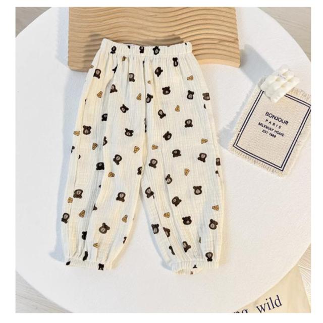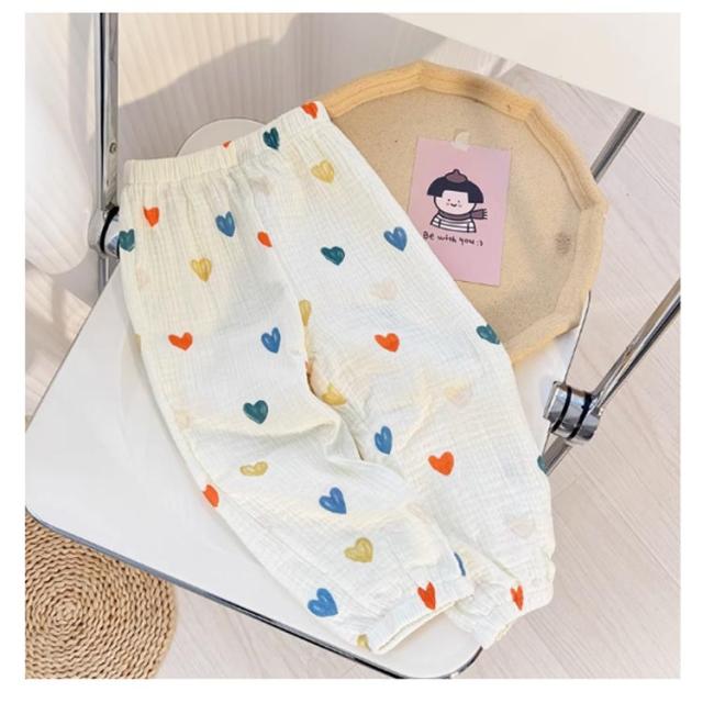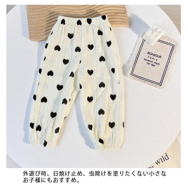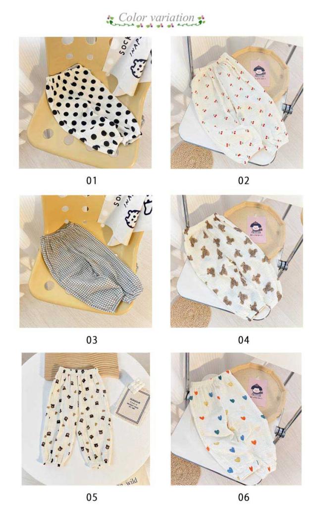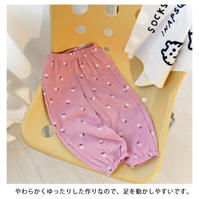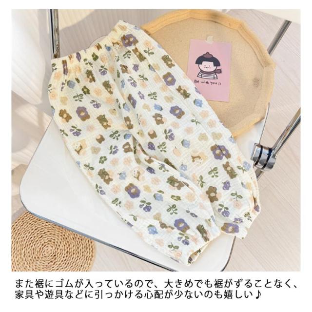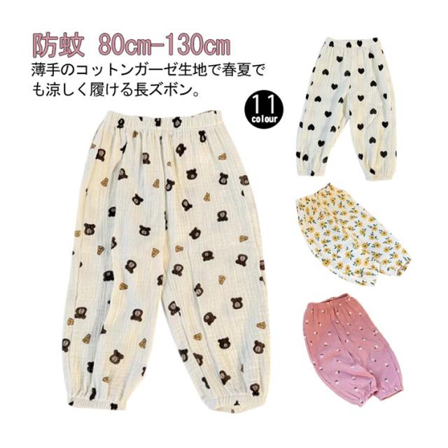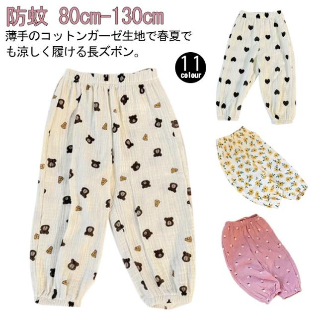 | 薄手のコットンガーゼ生地で春夏でも涼しく履ける長ズボン。 通気性に優れていて、あせもを防いだり、肌を出さないので虫よけにも。 部屋着や寝間着、ちょっとしたお出かけにも可愛く着られるデザインを集めました。 やわらかくゆったりした作りなので、足を動かしやすいです。 また裾にゴムが入っているので、大きめでも裾がずることなく、家具や遊具などに引っかける心配が少ないのも嬉しい♪ 外遊び時、日焼け止め、虫除けを塗りたくない小さなお子様にもおすすめ。 男女問わず着る事ができ、ナチュラルで合わせやすい11種類のカラー展開。 | |