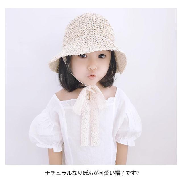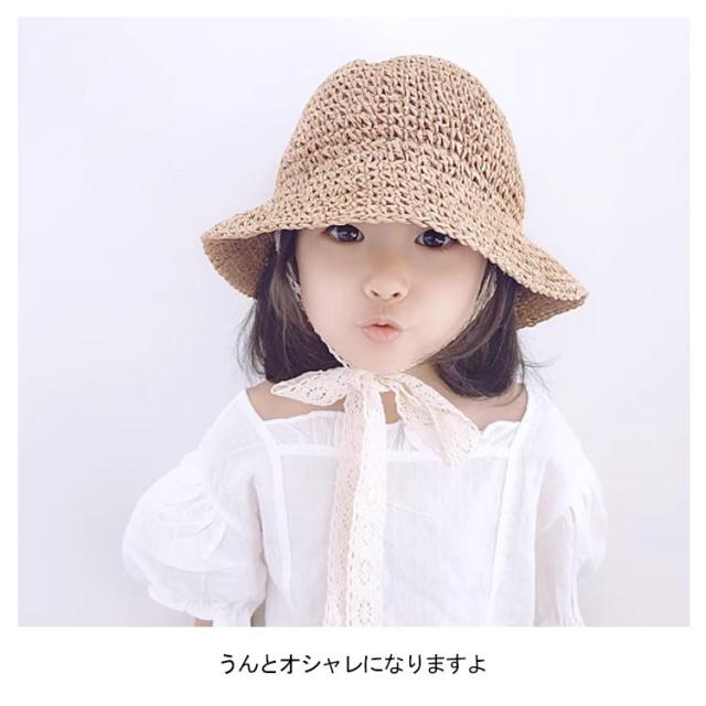 麦わら帽子 つば広 お出かけ ストローハット キッズ リボン ベビー 折りたたみ キッズ 夏用 あご紐 麦わらハット レース 帽子 女の子 日よけ 日焼け対策 紫外線対策 サンハット バケットハット 麦わら帽子 子供帽子 赤ちゃん 麦わら帽子 お散歩 かわいい 48cm