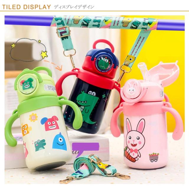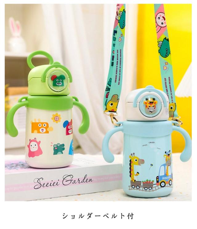 ストローボトル 両手 ステンレス ワンタッチ ショルダー付き 400ml ボトル こども ベビーマグ プレゼント 子ども 女の子 出産祝い ベビー 子供 男の子 赤ちゃん キッズ 練習 トレーニング 保育園