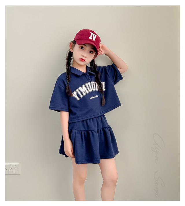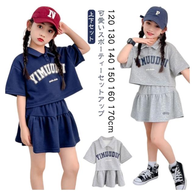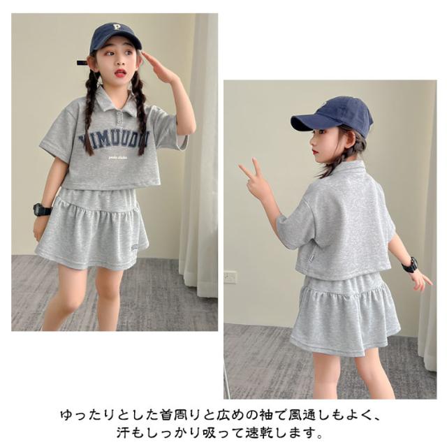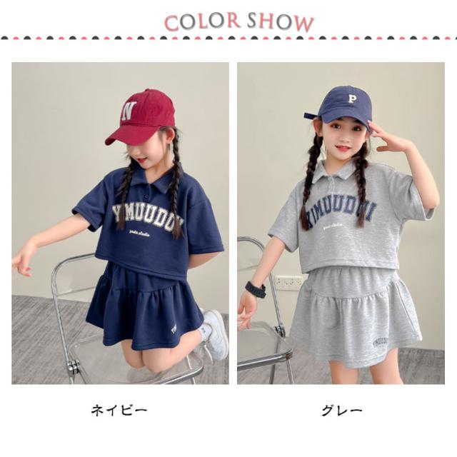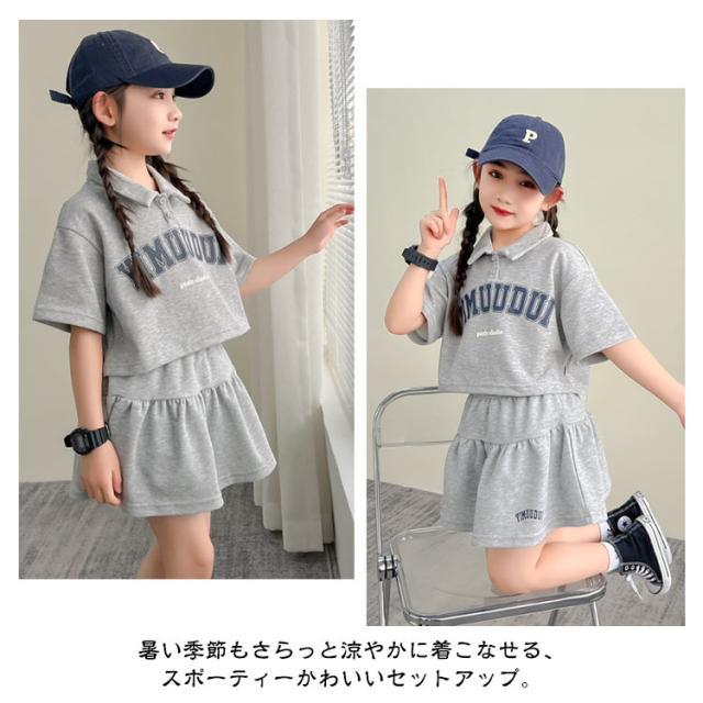 半袖 Tシャツ 上下 ファッション キッズ 140 スカート 子ども服 インナーパンツ付き セット 子ども服 女の子【可愛いスポーティーセットアップ】セットアップ 普段着 ミニスカート ポロシャツ 夏服 韓国子供服 120 130 かわいい 150 160 170cm