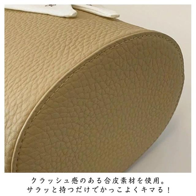 | コーデにアクセントをプラス!こなれた印象を演出するバケツトート。 大容量でON/OFF問わず持ちやすい◎細めのハンドルがスタイリッシュ! クラッシュ感のある合皮素材を使用。サラッと持つだけでかっこよくキマる! マチをしっかり設け、長財布や500mlペットボトル、コスメポーチなどもラクラク収納。 レザー風の程よいソフトマット感が、キレイめにもカジュアルスタイルにも合わせやすい。 使いやすいモノトーンカラー、キラリと光沢感の強いカラーをラインナップ。 | |