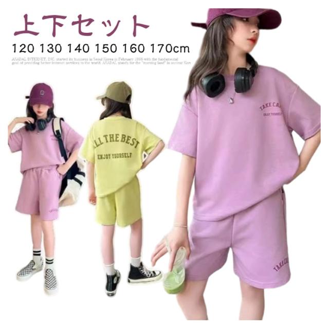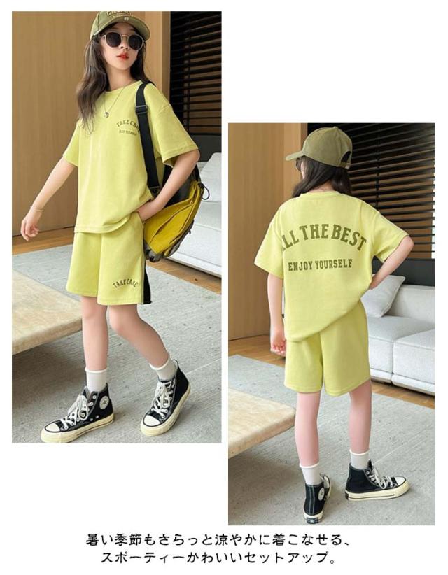 女の子 夏服 半袖 Tシャツ 【可愛いスポーティーセットアップ】子ども服 ファッション キッズ ショートパンツ 【可愛いスポーティーセットアップ】子ども服 セットアップ 上下 2点 セット 普段着 半ズボン 寝間着 かわいい 韓国子供服 120 130 140 150 160 170cm