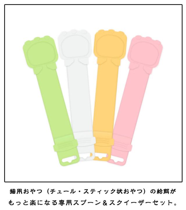 | ペット用スプーン 2個セット チュールが最後までキレイに使える! 猫用おやつ(チュール・スティック状おやつ)の給餌がもっと楽になる専用スプーン&スクイーザーセット。 挟んでぐっと絞るだけで、チュールが最後まで無駄なく出せる! 手が汚れず衛生的で、忙しいときもサッと給餌 持ち手先端には缶詰オープナー機能付き!滑りやすい缶のフタもラクラク開けられる 丸洗いOK、お手入れ簡単 ペットとの毎日をもっと快適に。おやつタイムが楽しくなる便利アイテムです♪ | |