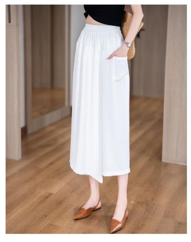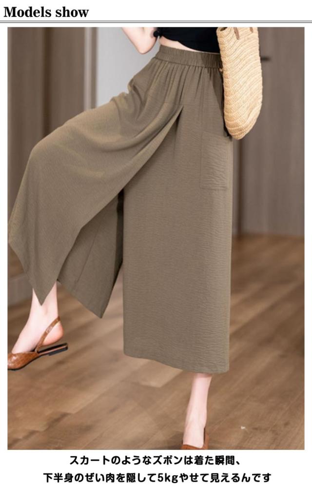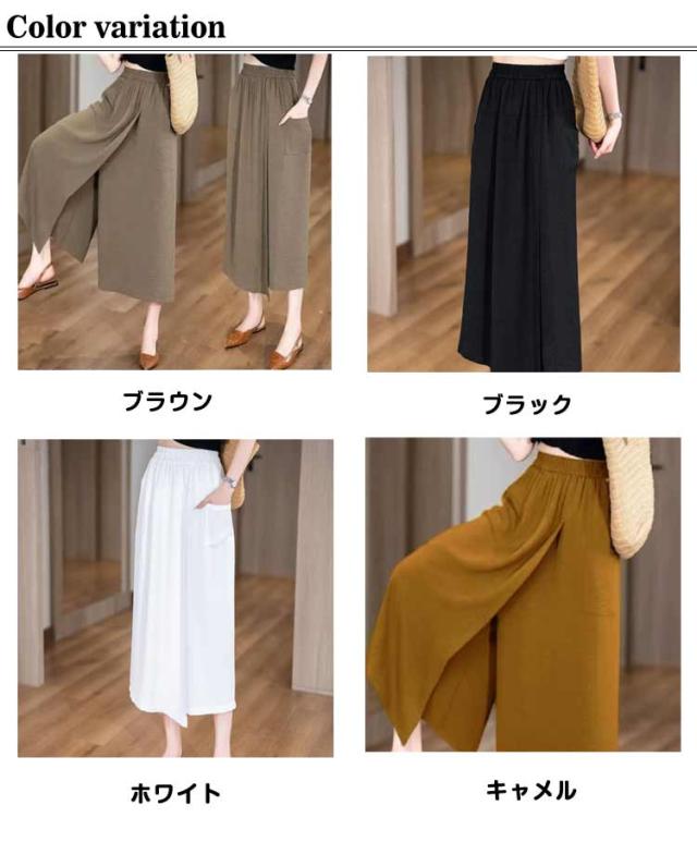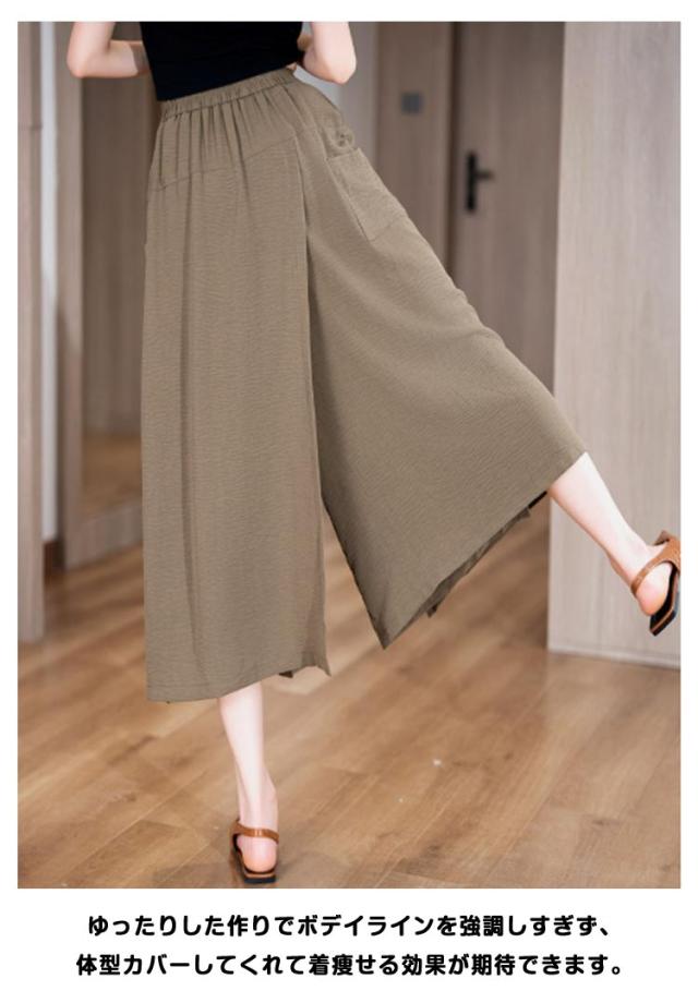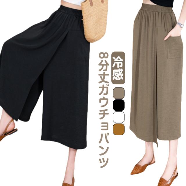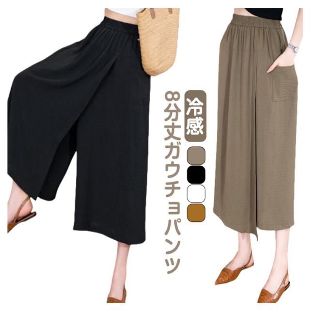 ガウチョパンツ 接触冷感 ワイドパンツ アイスシルクパンツ in 1 8分丈 冷感 レディース スカート見えるパンツ 2 ガウチョ スカートパンツ 8分丈 ゆったり 薄手 ひんやり 通気 体型カバー カジュアル きれいめ 春夏