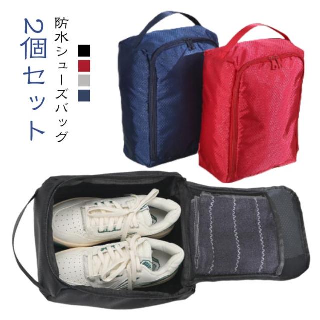 【2個セット】靴袋 防水 持ち手付き シューズバッグ シューズケース 靴入れ袋 折りたたみ 防塵 ファスナー シューズ袋 上履き入れ 収納 大人 中学生 高校生 旅行 出張 野球 スポーツ コンパクト 撥水加工 スポーツ 旅行 男女兼用 ジム 通勤 バッグ