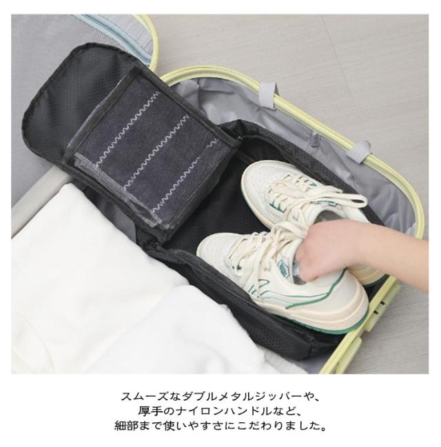 | 【防水シューズバッグ】 【2個セット】 アウトドアや旅行、ジムなどに最適! 防水・防塵・防汚に優れたエコPU防水コーティングと耐久性の高いハニカム構造のオックスフォード布を採用。 使わない時はコンパクトに折りたためて、持ち運びに便利。 スムーズなダブルメタルジッパーや、厚手のナイロンハンドルなど、細部まで使いやすさにこだわりました。 内側のフタ裏にはメッシュポケット付きで、タオルやスリッパ、靴下などの収納にも便利です。 18.5cm〜30cmの靴に対応! | |