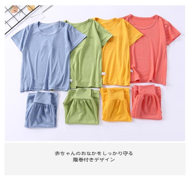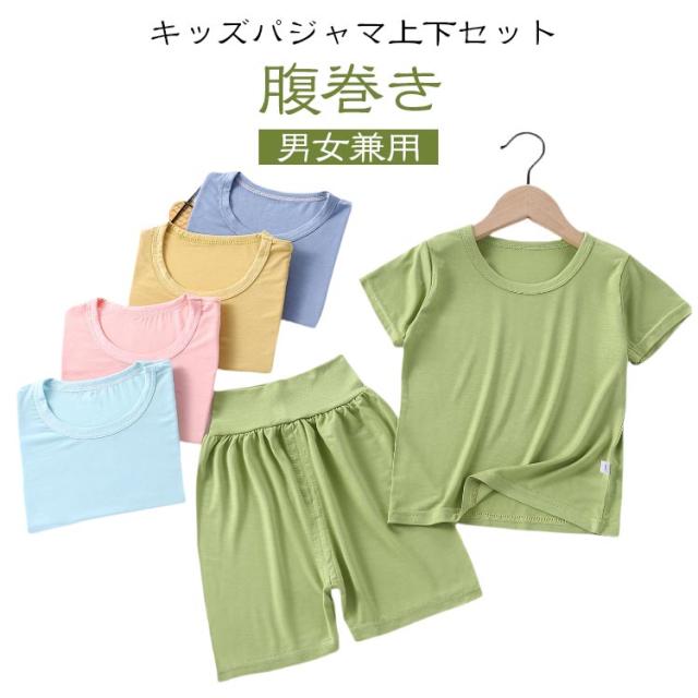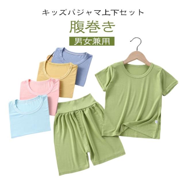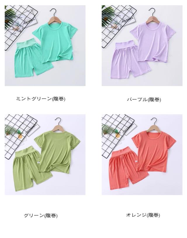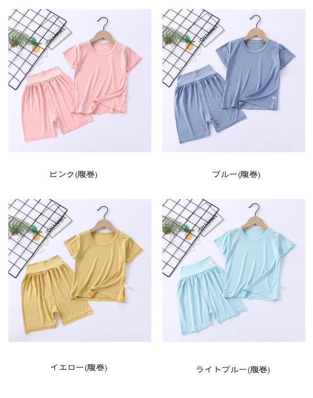 女の子 子供服 パジャマ 腹巻付き キッズ おしゃれ 寝巻き 男の子 トップス 寝間着 ルームウェア 上下セット 男女兼用 半袖 ナイトウェア ハーフパンツ ハイウエスト 部屋着 リラックス 伸縮性 薄手 無地 ベビー 可愛い 快適 春