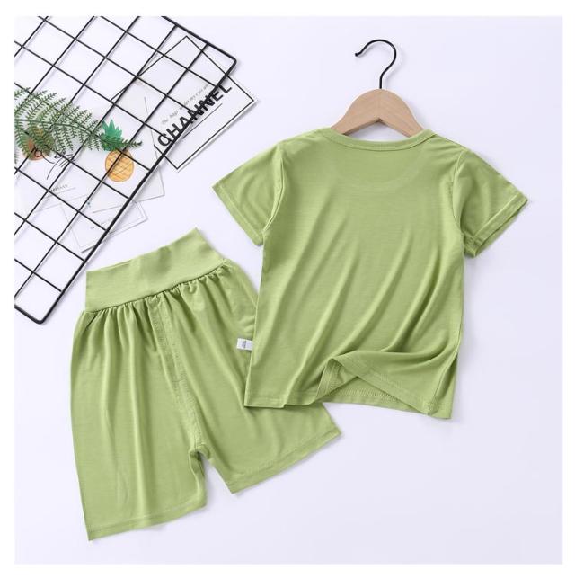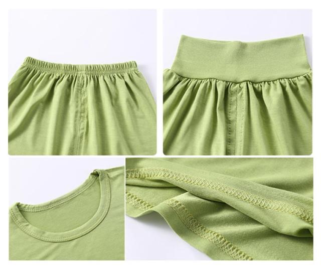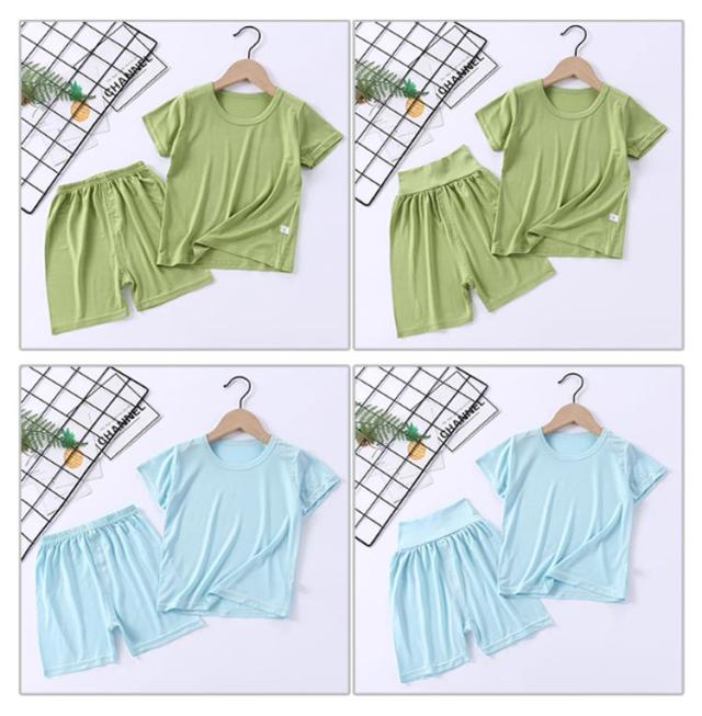 | 【キッズパジャマ上下セット】【腹巻き】 柔らかくて肌に優しいモダール素材を採用 赤ちゃんのおなかをしっかり守る腹巻付きデザイン♪ 伸縮性抜群なので動き易くて着心地ラクラク シンプルで夏に大活躍するアイテムです | |