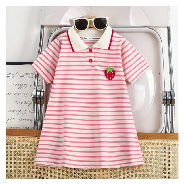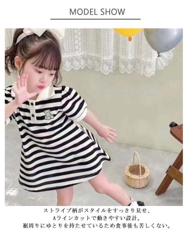 キッズ くま柄 スクール風ワンピース 柔らか いちご柄 ポロワンピース 薄手ポロシャツドレス 女の子 夏用 ゆったりワンピ 通気性良い ポロワンピース Aライン子供服 ボタン開閉式襟 軽量 カジュアル おしゃれ プレゼント