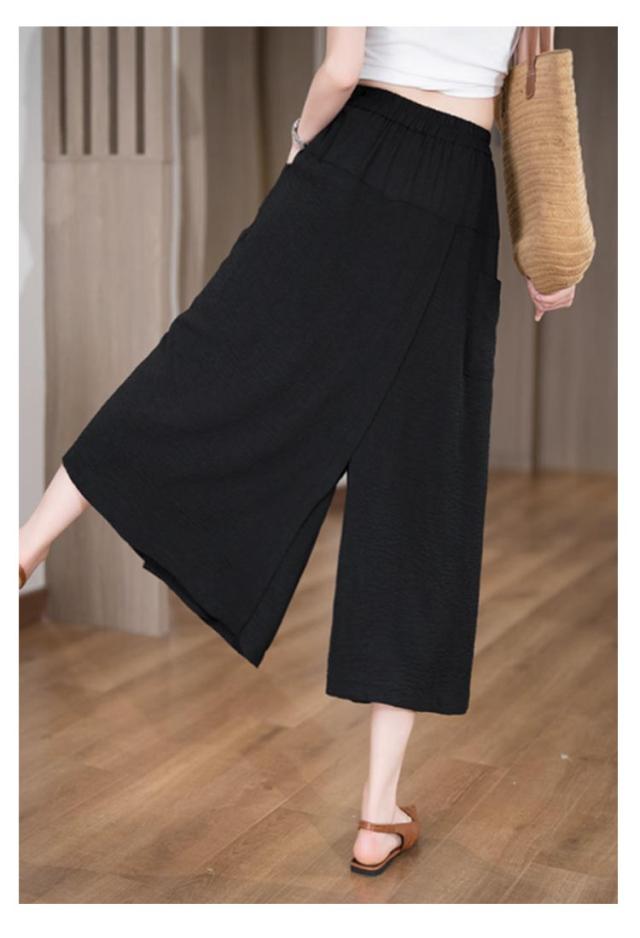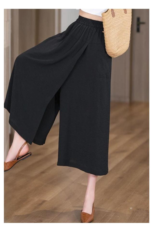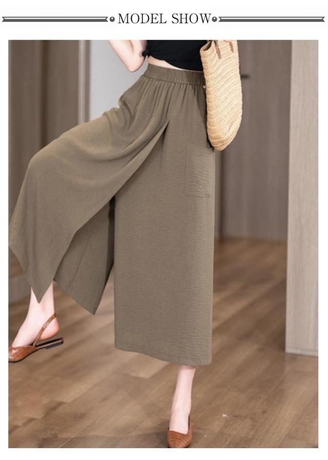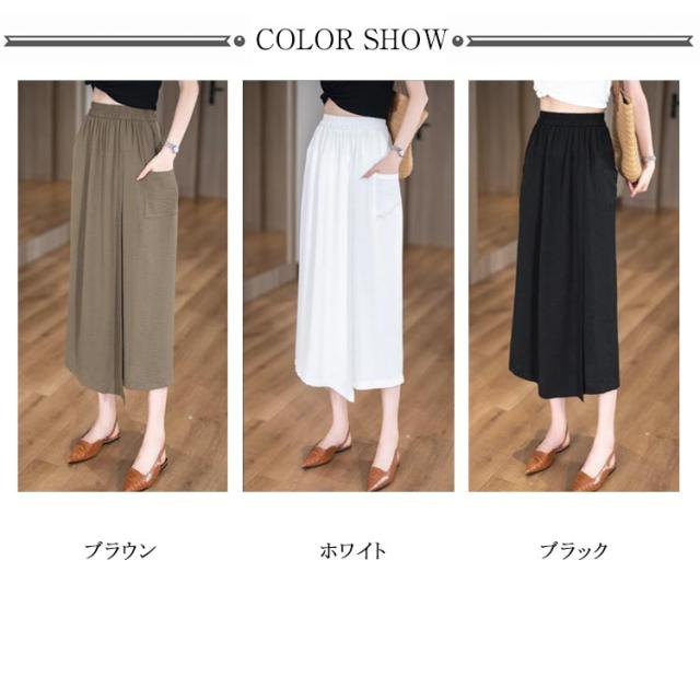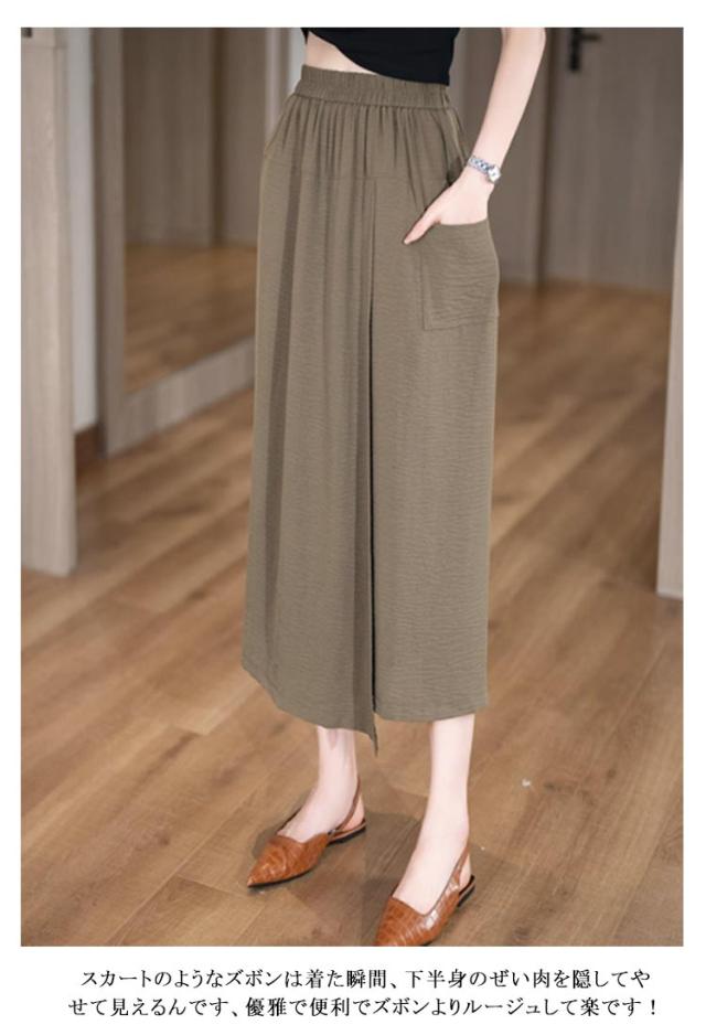 | 接触冷感 8分丈 ガウチョパンツ スカートのようなズボンは着た瞬間、下半身のぜい肉を隠してやせて見えるんです、優雅で便利でズボンよりルージュして楽です! 快適で涼しくい冷感生地、通気性が良く、全然ムレない、夏を涼しく快適に過ごしましょう。 ゆっゆたりワイドシルエットだから、体型カバーも◎ | |