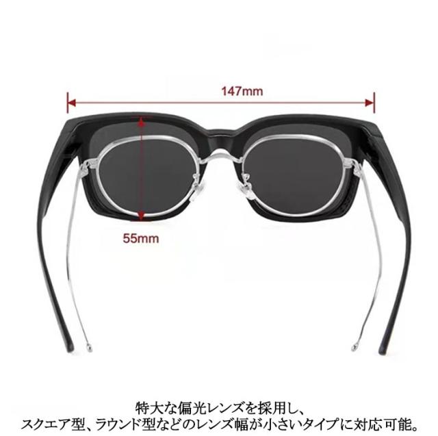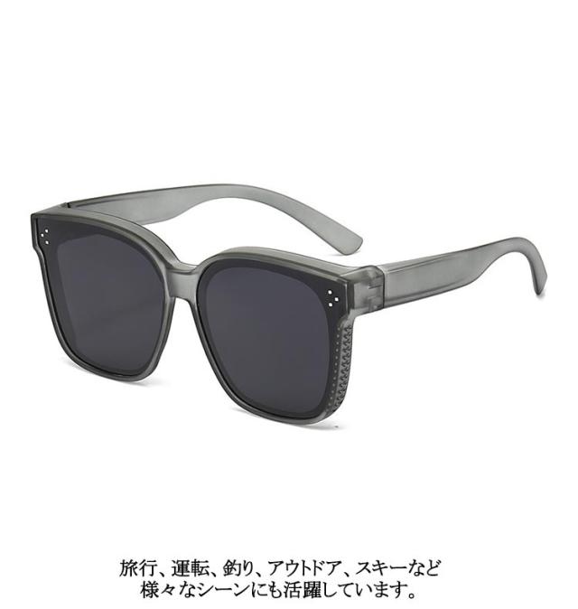 | 通メガネの上にかけられる!常のサングラスとしてもOK! スタイリッシュ性と実用性を兼ね備えたサングラス。 メガネの上にかけられるので、近視、遠視、老視の眼鏡かけた人もご利用できます。 人間工学に基づいたフレーム設計により、鼻に圧力がかからず、快適に長く使うことができます。 超軽量&高弾性のTR素材を採用し、高耐摩耗性に優れて弾力性もよい、掛け心地の良さも抜群。 偏光レンズなので、視覚的には本来の色味をしっかり再現し、光の反射や散乱を除去し、クリアな視界を提供! 旅行、運転、釣り、アウトドア、スキーなど様々なシーンにも活躍しています。 | |