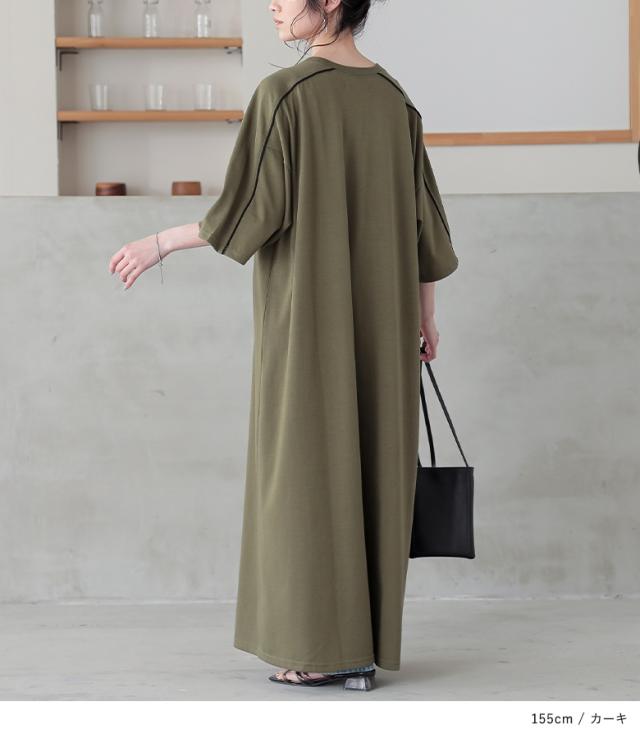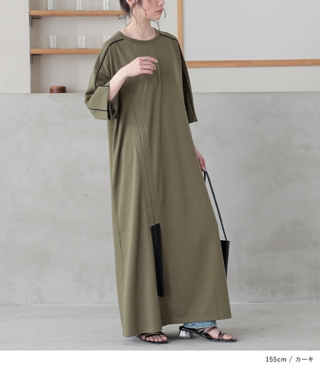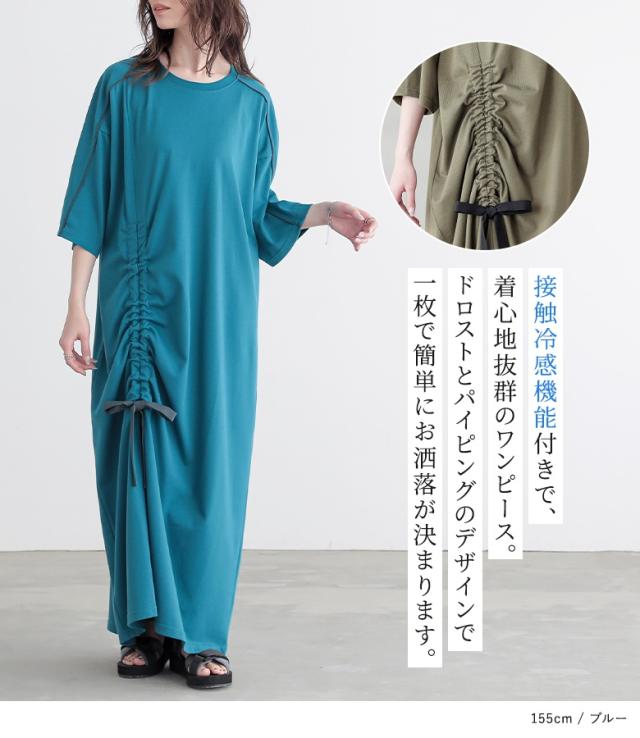 ワンピース レディース ドレス ロング丈 半袖 接触冷感 パイピング ドロスト 配色 クルーネック 体型カバー 二の腕カバー 春 夏 機能性アイテム ひんやり冷感シリーズ 【TP】 ロングワンピース マキシワンピース カットワンピース 五分袖 マキシ丈 リボン 無地 綿混 コットン混 レイヤード 重ね着 おうちで洗える 冷感 機能性 カジュアル シンプル ナチュラル モード キレカジ フェミニン ゆったり ゆる 楽ちん Sサイズ Mサイズ Lサイズ LLサイズ 3Lサイズ XLサイズ フリーサイズ ぽっちゃり 大きいサイズ プラスサイズ 10代 20代 30代 40代 50代 60代 女子会 オフィス 通勤 通学 お買い物 お出掛け 旅行 リゾート レジャー アウトドア キャンプ プール 海 おしゃれ お洒落 トレンド 流行 kOhAKU コハク 大人女子 大人可愛い お洒落可愛い 大人カジュアル ラフ スタイリッシュ 洗練 エッジィ 上品 きれいめ かっこいい osharewalker オシャレウォーカー おしゃれうぉーかー ブルー 青 グリーン 緑 カーキ ブラック 黒 hinyari[ID]12dn0q7
