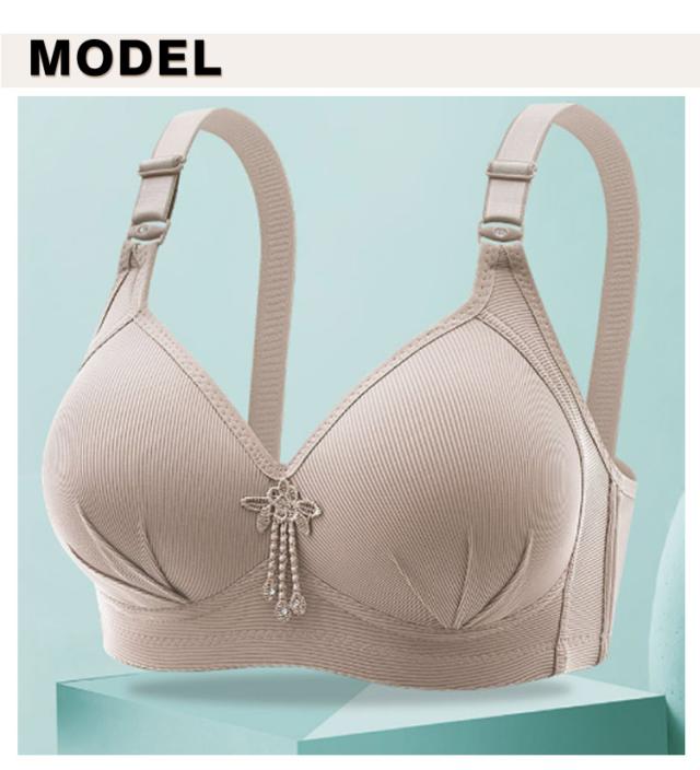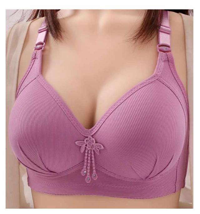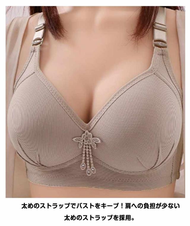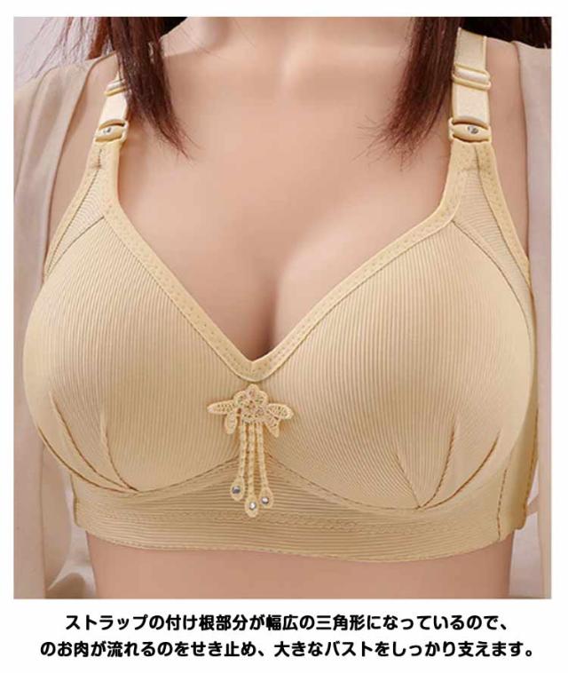 | 下垂したバストもふっくら寄せる、脇高設計で脇肉スッキリのブラジャー。胸を小さく見せるブラジャー。 ノンワイヤーの仕様でストレスフリーな着用感。 伸縮性のある素材ではみ出る胸をしっかりホールド。フロント上部に伸縮性のあるゴムを入れ、視線が気になる谷間部分も高級感のあるラッセルストレッチ素材でしっかりガード。 太めのストラップでバストをキープ!肩への負担が少ない太めのストラップを採用。ストラップの付け根部分が幅広の三角形になっているので、胸のお肉が流れるのをせき止め、大きなバストをしっかり支えます。3列3段のホックを採用しているから背中もしっかりホールド。 | |
