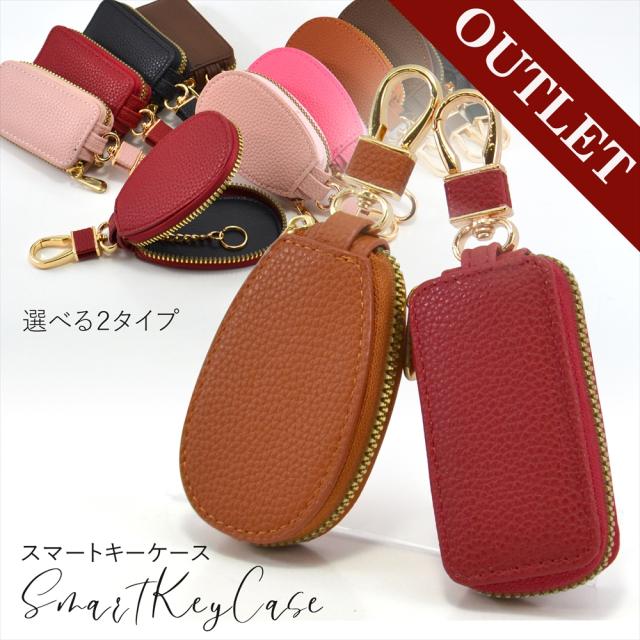 [アウトレット/訳あり/返品不可] キーケース レディース メンズ スマートキー スマートキーケース ケース スリムタイプ 楕円形 オーバル キーレス カバー おしゃれ かわいい シンプル コンパクト ファスナー 小物入れ リップケース ゴールド カラビナフック 男性 女性 鍵