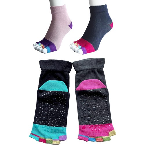 5本指ソックス レディース 滑り止め付 つま先なし く 丈 5本指靴下 ヨガソックス 表糸綿100% 色はお任せ