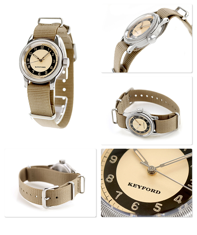 正規品 モントルロロイ ミリタリーウォッチ 日本製 メンズ 腕時計 txd-copp-03KN M.R.M.W. THE TUXEDO DIAL WATCH Copper アナログ ベージュ ◆時計製作専門会社モントルロロイが、展開するミリタリーウオッチシリーズ。世界の名作ミリタリーウオッチを復刻。ミリタリーアイテムは普遍的でいつの時代も支持される、耐久性・使いやすさを追求した長年使える優れモノです。 文字盤全体は光沢を抑えたゴールドコッパー色。KEYFORDロゴ、秒表示のトレインレールはタキシードダイヤルの要でもある円状帯と同じフォーマルなブラックで引き締めました。アラビア数字インデックスと秒表示のトレインレールは安心感漂うペールオレンジで全体をよくまとめています。ケースと同色の銀色のペンシル針には数字と同じ色の蓄光が施されています。