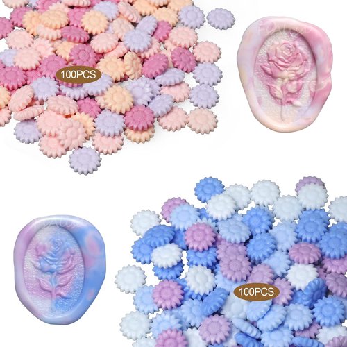 fsalisa シーリングワックス 小粒 シーリングスタンプ 封蝋 シーリング ワックス スタンプ用 招待状 結婚式 祝福 告白 記念日 誕生日 祝い 手紙 メッセージカード 向日葵型 Set2#モランディ