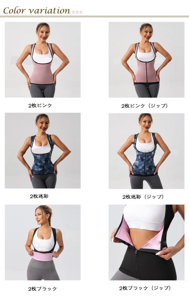 ダイエット 解消 【2枚セット】女性用 促進 【2枚セット】女性用 シャツ タンクトップ ポッコリお腹 ベスト スーツ 代謝 発汗 サウナ 脂肪 燃焼 改善 ジップベスト シャツ スーツ ダイエット タンクトップ ダイエット着 ウエイトトレーニング