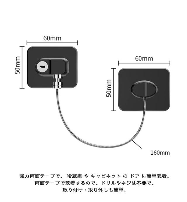 | 鍵付きの冷蔵庫ドアロック 。 こんな方におすすめ!子供や赤ちゃんの冷蔵庫からの盗み食いやいたずらを防ぎたい方、高齢者の方の冷蔵庫の開閉を防止するための 認知症介護用品 、ダイエット 中の間食を防ぎたい方。 強力両面テープで、 冷蔵庫 や キャビネット の ドア に簡単装着。両面テープで装着するので、ドリルやネジは不要で、取り付け・取り外しも簡単。 冷蔵庫のドア 以外にも、書類棚 や キャビネット 、 物置 、プリンターの 引き出し 、 ドアやトレイに後付けで鍵設置。開けっ放し防止 。 キーを回して固定しているワイヤーを外すと、ドアオープン。 | |