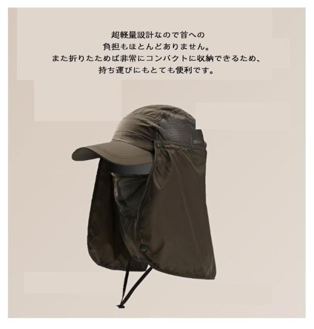| 釣り、登山、ハイキング、乗馬などのアウトドア活動やウォーキング、日常レジャー、スポーツ、夏場の農作業、暑い日差しの中での長時間の屋外作業などのあらゆるシーンでの日差し対策に大活躍!! 超軽量設計なので首への負担もほとんどありません。 また折りたためば非常にコンパクトに収納できるため、持ち運びにもとても便利です。 | |