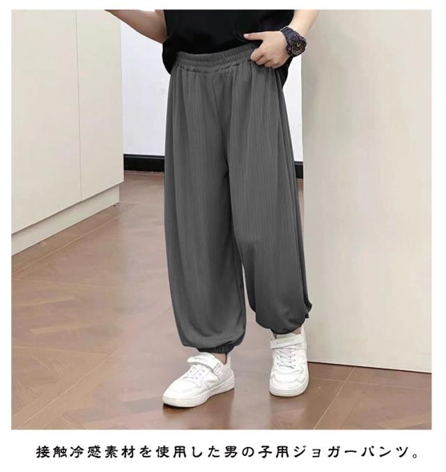| 接触冷感素材を使用した男の子用ジョガーパンツ。 ひんやり涼しい接触冷感なので、夏の大活躍は間違いなし! ウエスト部分は総ゴム仕様で動きやすく、着脱もラクラクです♪ ゆとりのあるシルエットとサラリとした素材による清涼感が快適な着心地を演出します。 遊びや通学など、夏のデイリーユースにも大活躍です◎ | |
