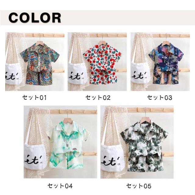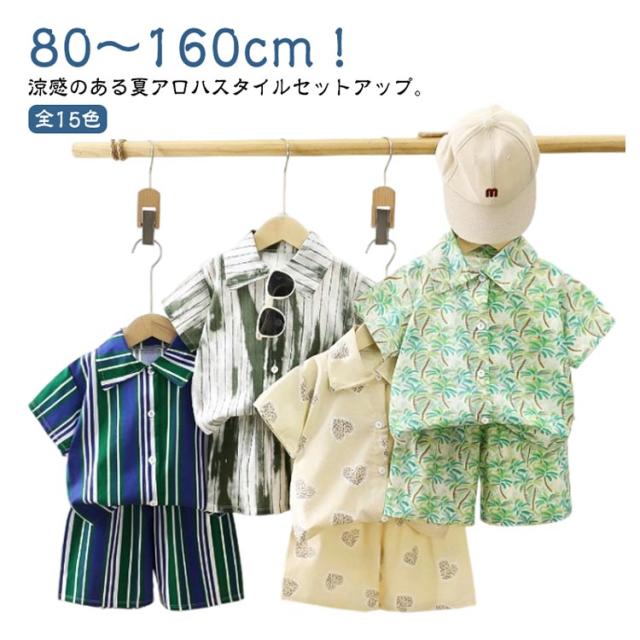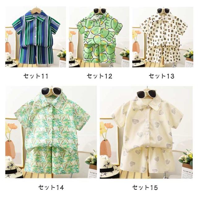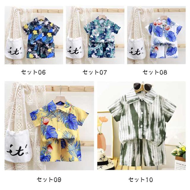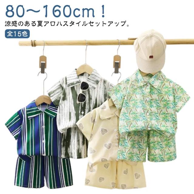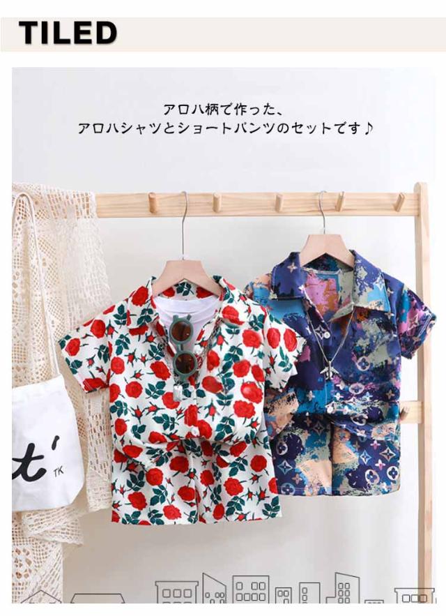 春夏 全15色 女の子 ショートパンツ 男の子 子供服 ベビー服 上下セット 2点セット 子ども 全15色 ハーフパンツ アロハシャツ 半袖シャツ 総柄 リゾート ジュニア アロハシャツ ギフト 海 ビーチ 旅行 セットアップ 80 90 100 110 120 130 140 150