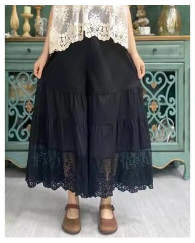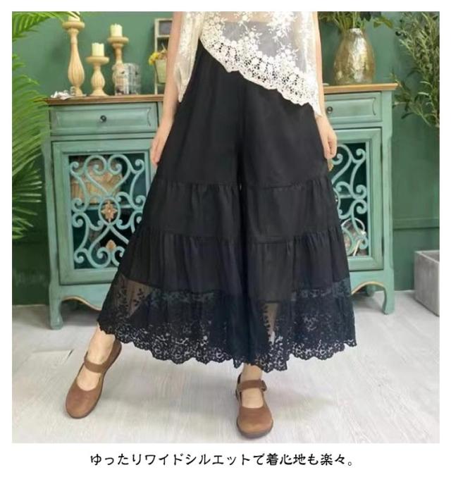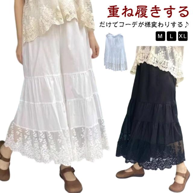 M 下着 ロング丈 裾 レディース フリル パンツ ゆったり ワイドパンツ インナー レース ペチコート おしゃれ 裾レース付きペチパンツ ペチコート 重ね着 マキシ丈 ペチパンツ ボトムス 体型カバー 春夏秋 大きいサイズ 透けない 透け防止 黒 白 送料無料 ペチパンツ L
