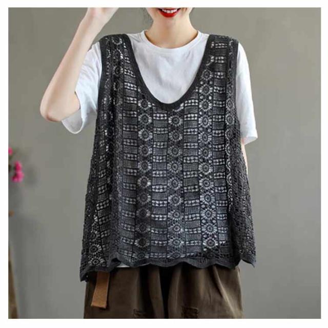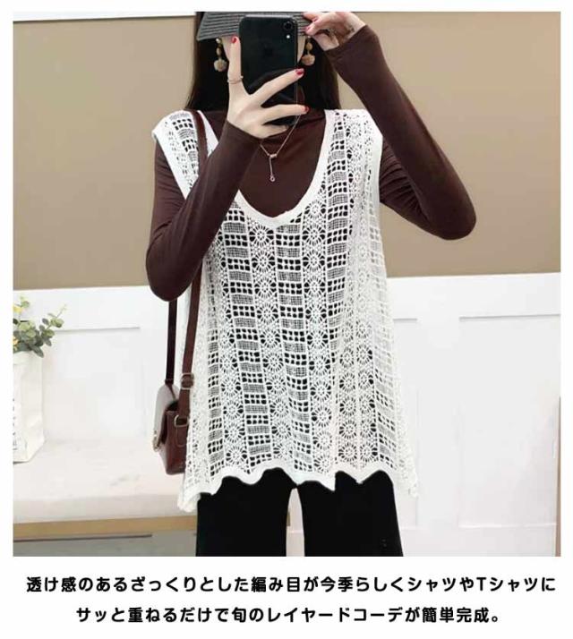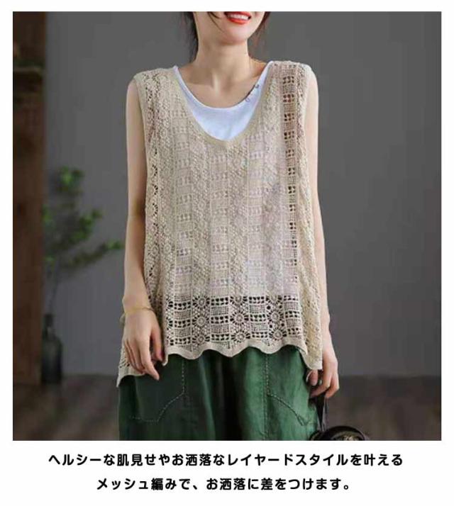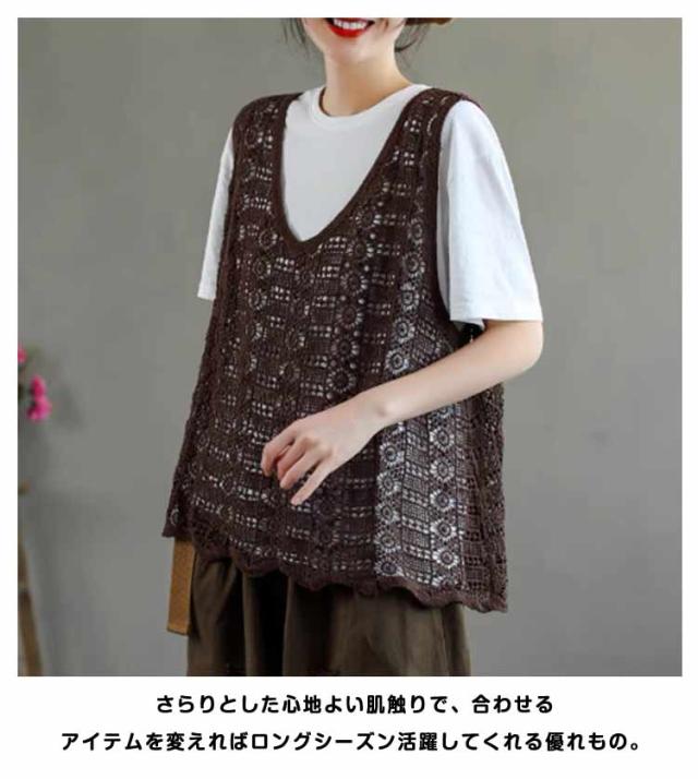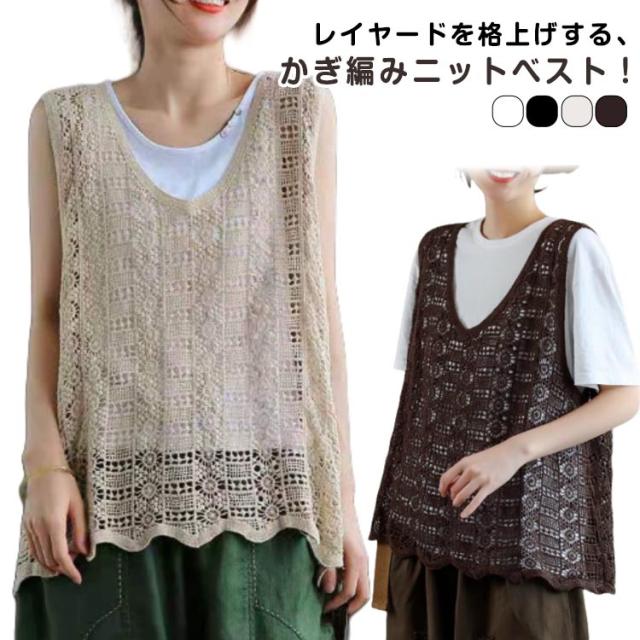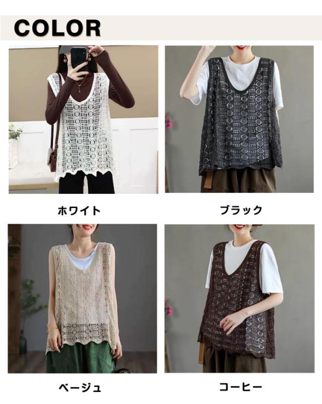 レディース 春夏 重ね着 ベスト おしゃれ 送料無料 無地 ニットベスト 透かし編み レース かぎ編み Vネック 花柄 ノースリーブ サマーニット きれいめ カジュアル プルオーバー トップス レイヤード クロシェ編み 袖なし 春 夏 秋 おしゃれ かわいい
