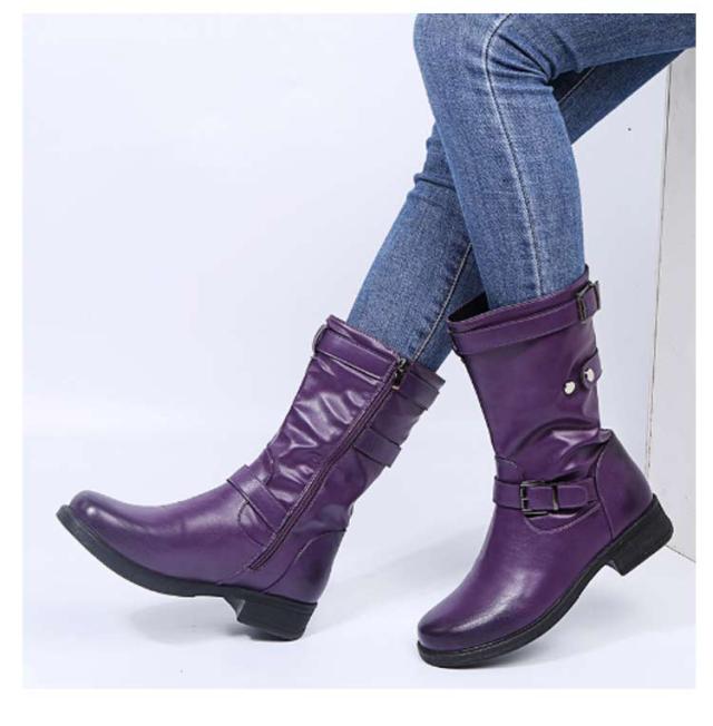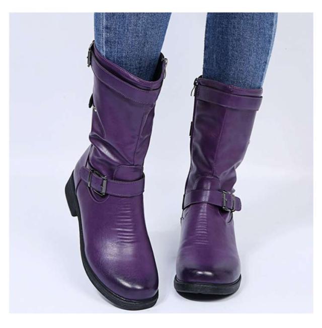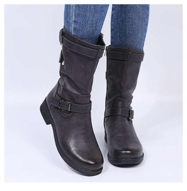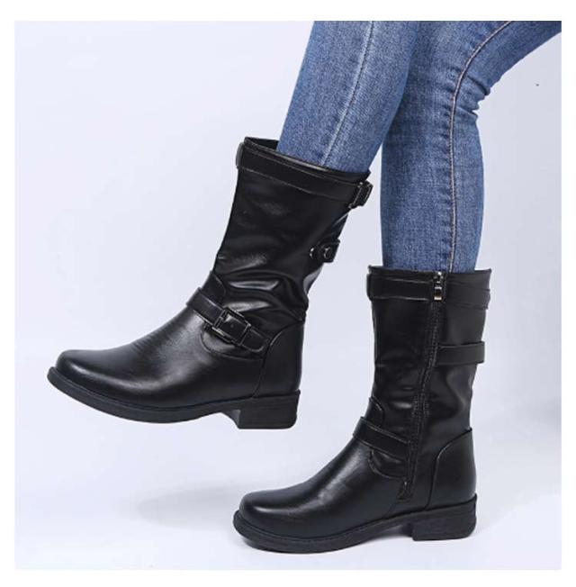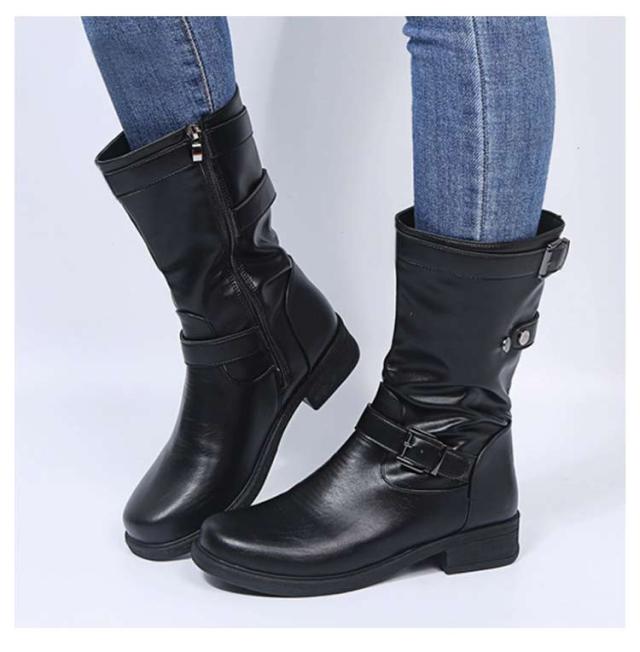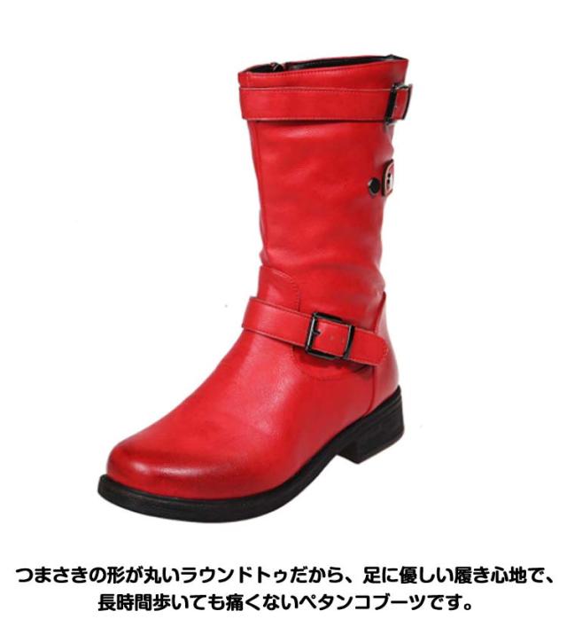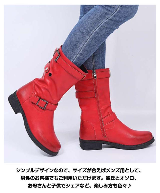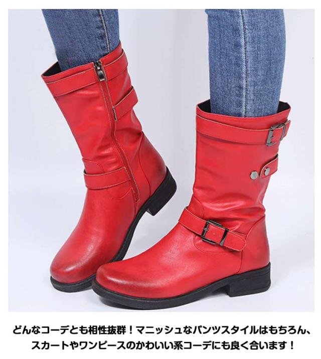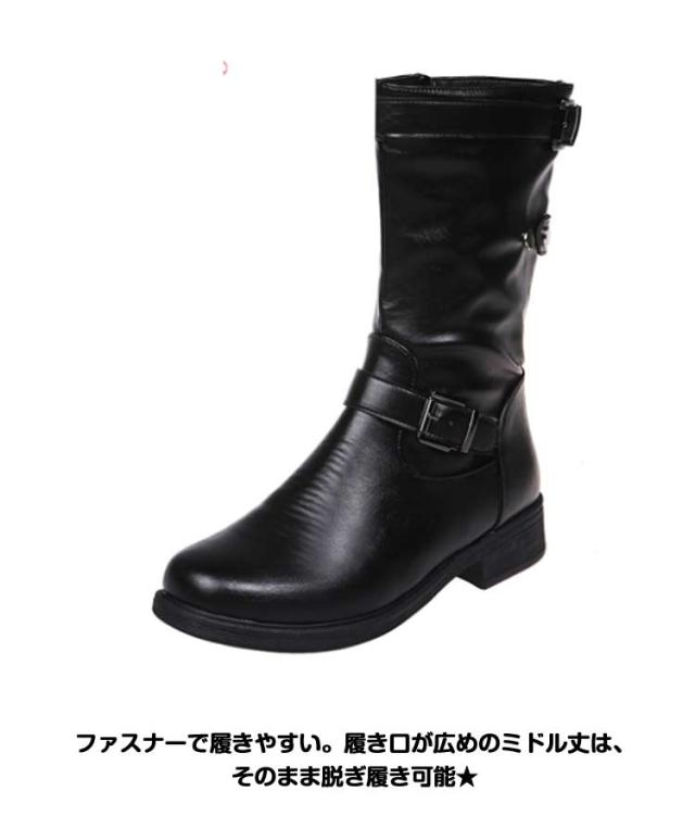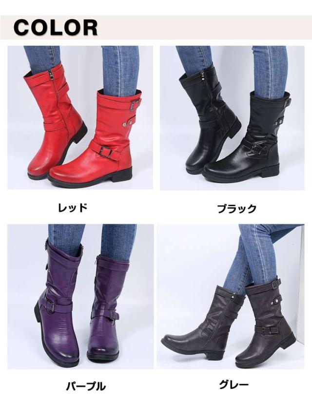 ワイズ ブーツ エンジニアブーツ 筒周り 防滑 大きいサイズ 甲高 幅広 厚底 ゆったり ブーツ ミドルブーツ ミドル丈 くしゅくしゅ ベルト 疲れにくい 履きやすい エンジニアブーツ ラウンドトゥ ファスナー 靴 レディース靴 ローヒール レディース ぺたんこ 美脚 春 秋冬