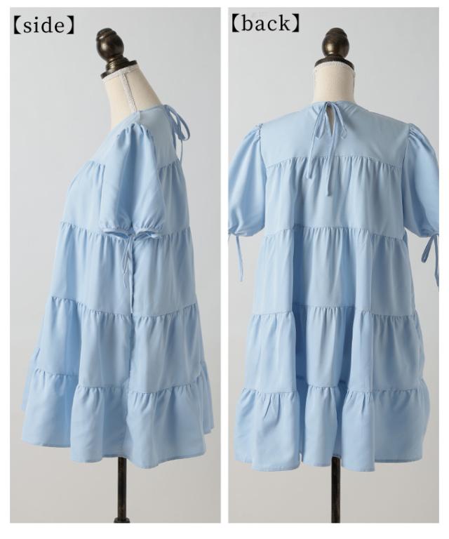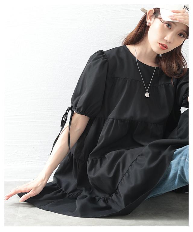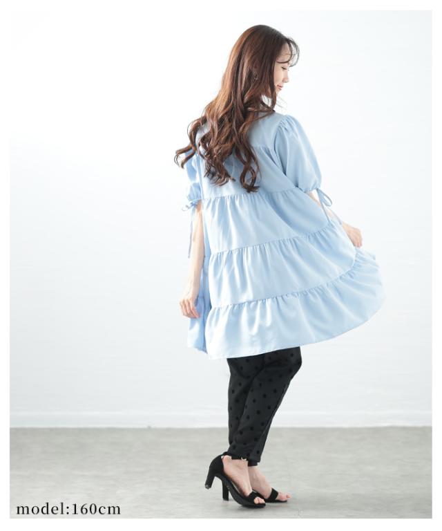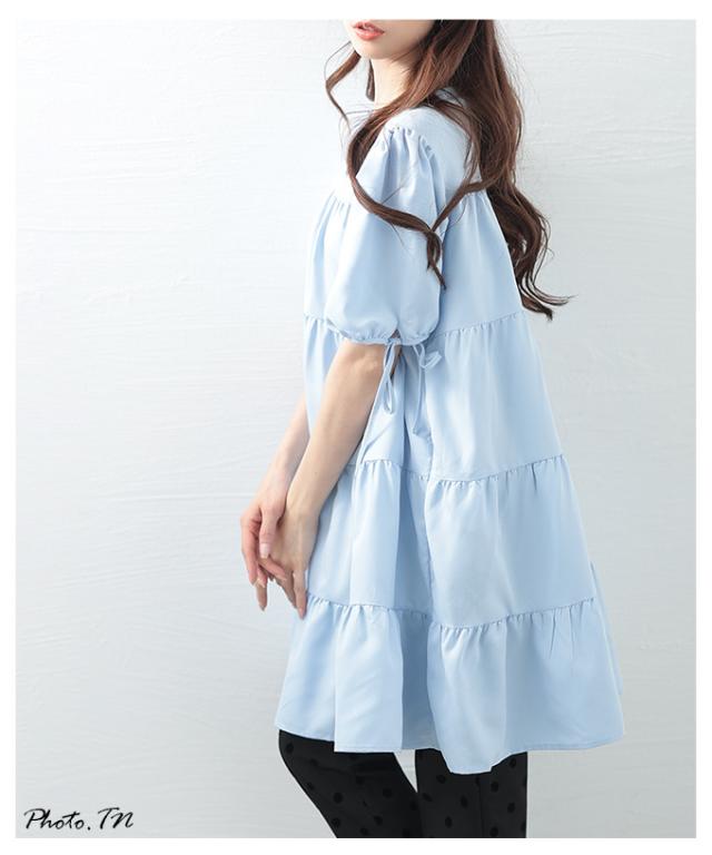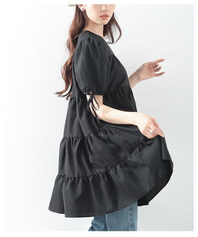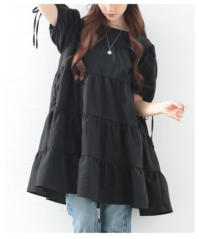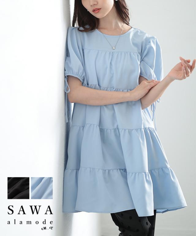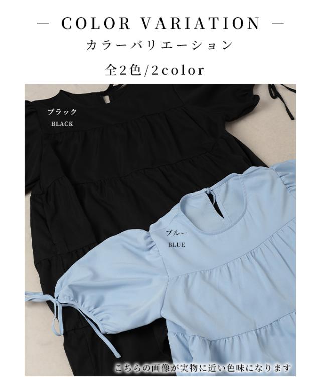 春新作 甘く揺れるティアードフレアチュニック レディース ファッション チュニック トップス ワンピース ティアード パフスリーブ リボン ミドル 無地 黒 青 30代 40代 50代 60代 サワアラモード sawaalamode otona 大人 cawaii 可愛い 洋服 かわいい服 almam-1753