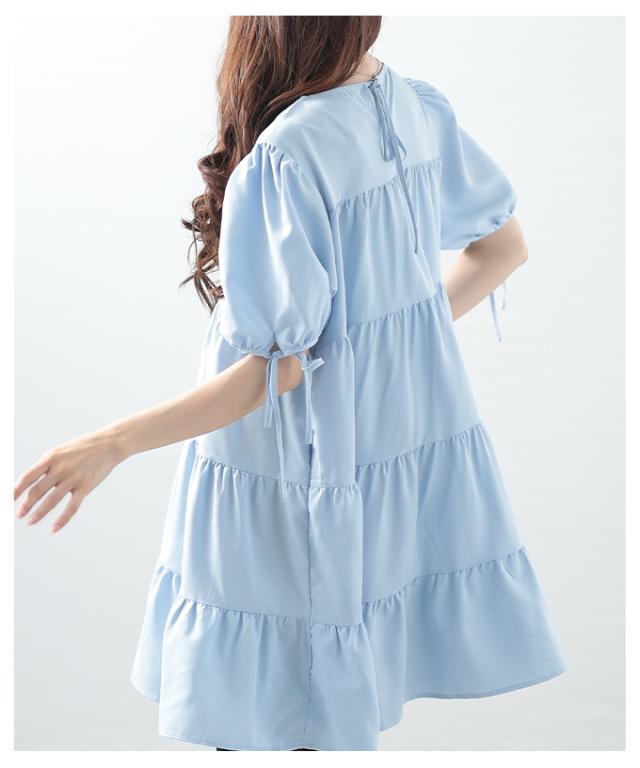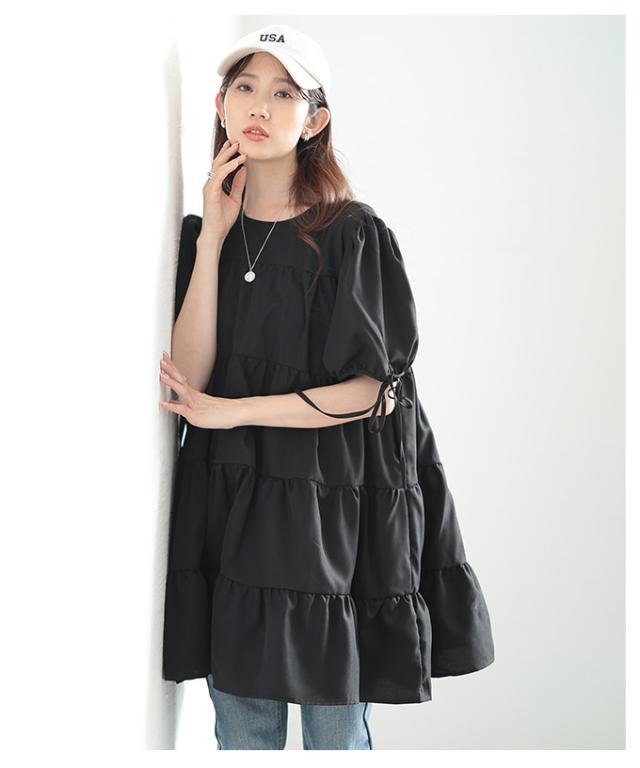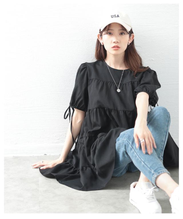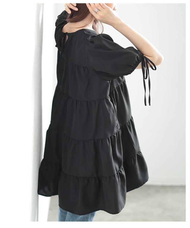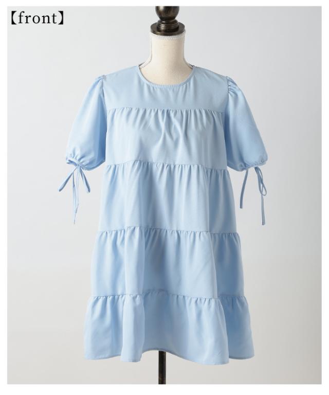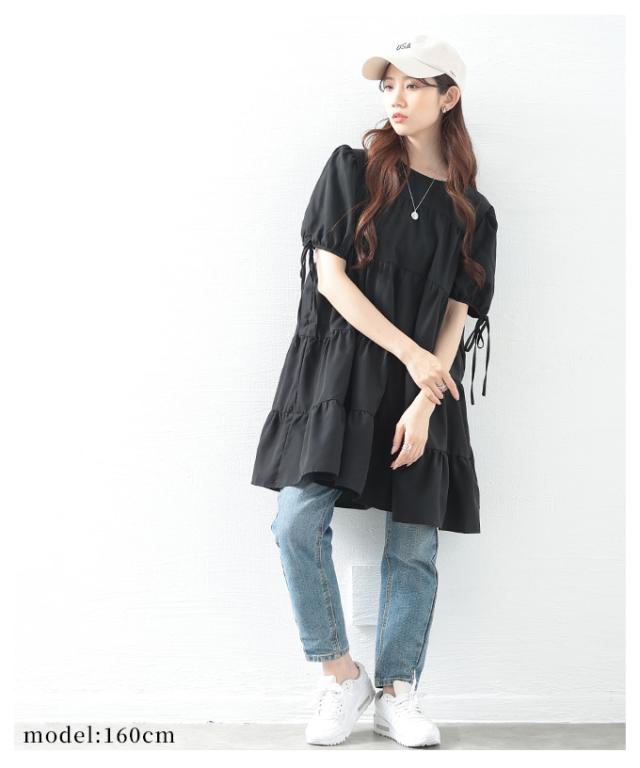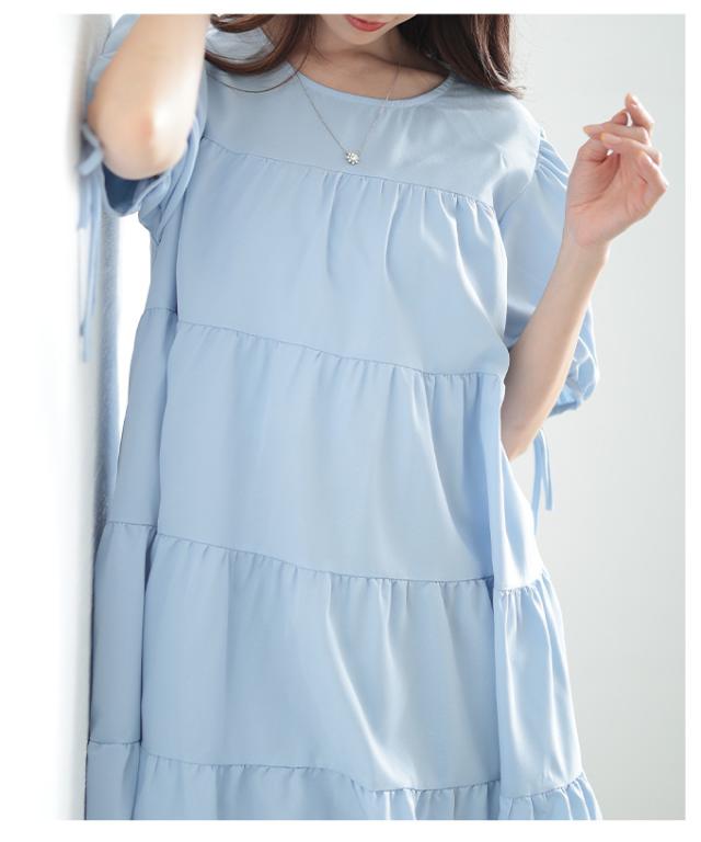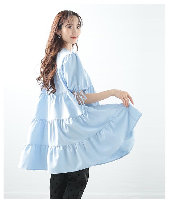 春新作 甘く揺れるティアードフレアチュニック レディース ファッション チュニック トップス ワンピース ティアード パフスリーブ リボン ミドル 無地 黒 青 30代 40代 50代 60代 サワアラモード sawaalamode otona 大人 cawaii 可愛い 洋服 かわいい服 almam-1753