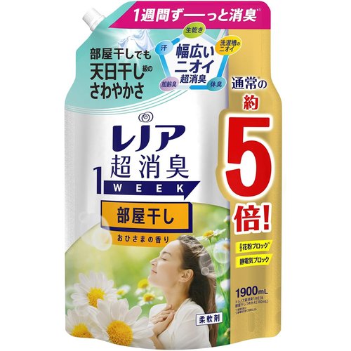 レノア 超消臭1WEEK 柔軟剤 部屋干し おひさまの香り 詰め替え 大容量 1900mL