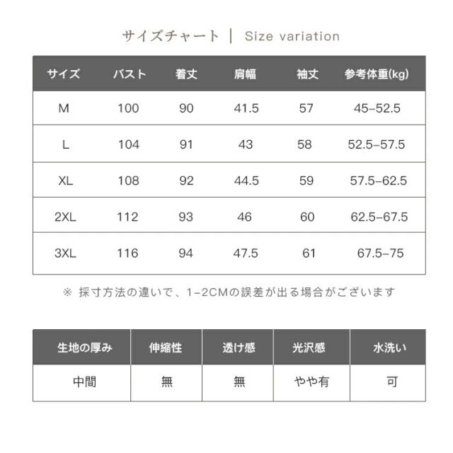 【3XL】 着丈/94 バスト/116 袖丈/61 肩幅/47 cm 推薦体重:67.5〜75kg