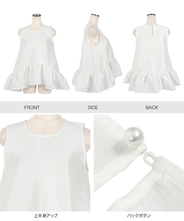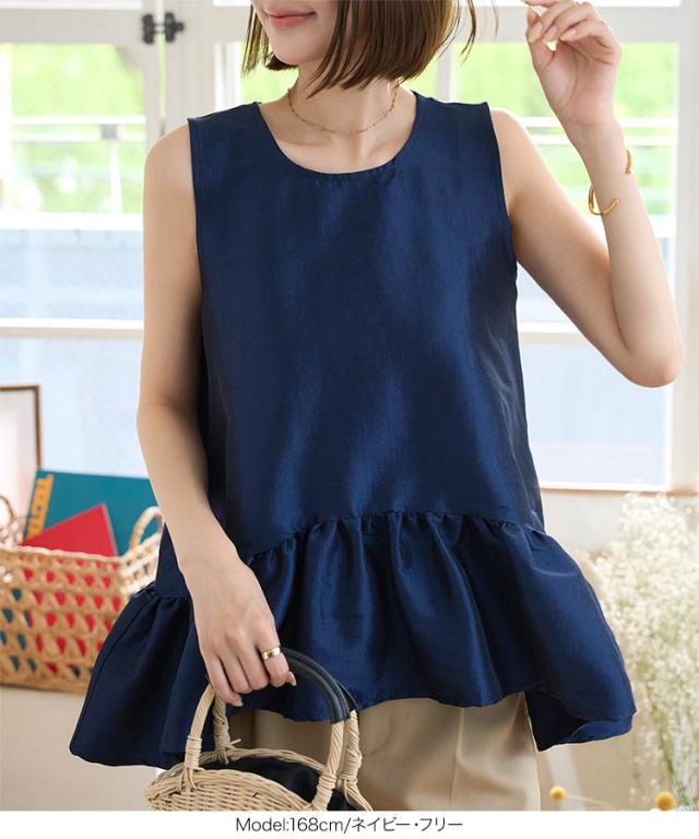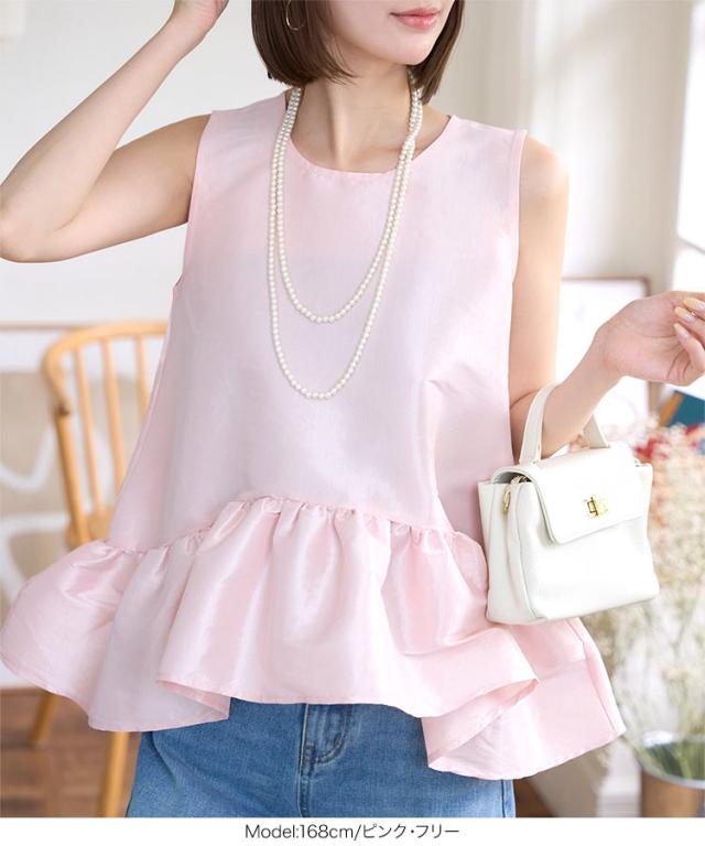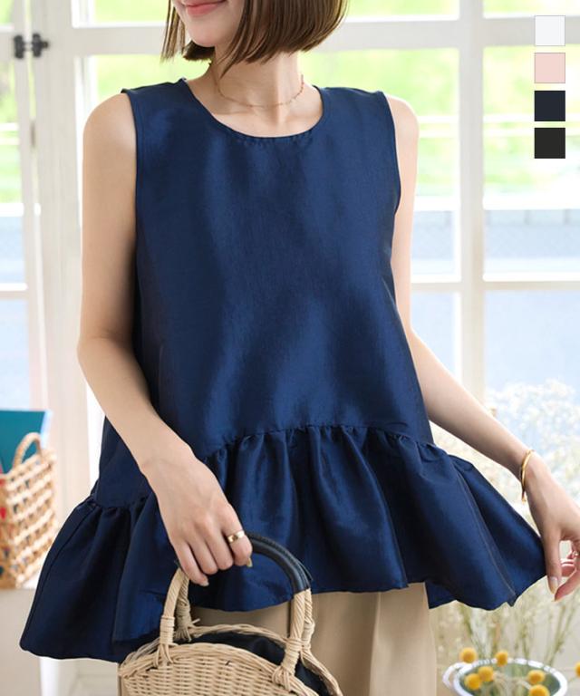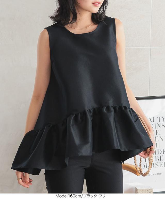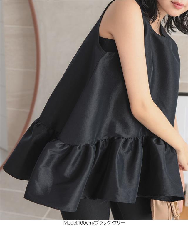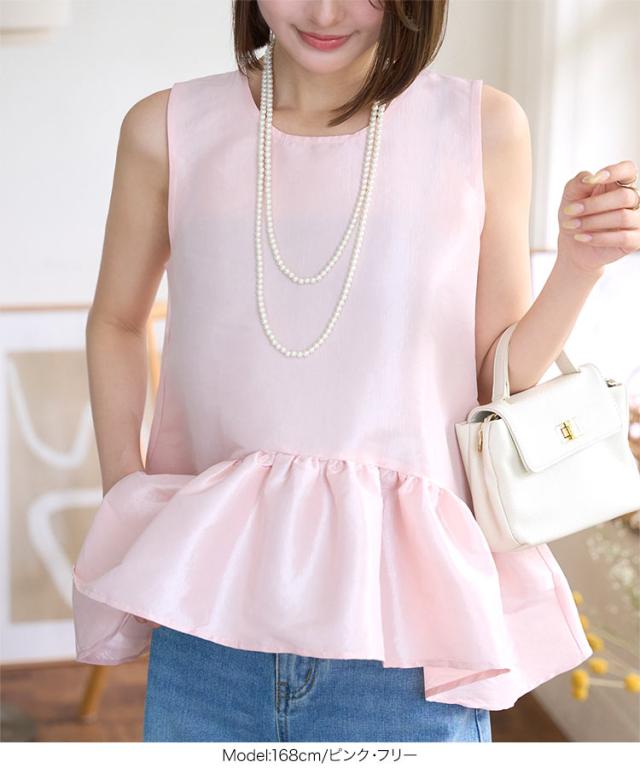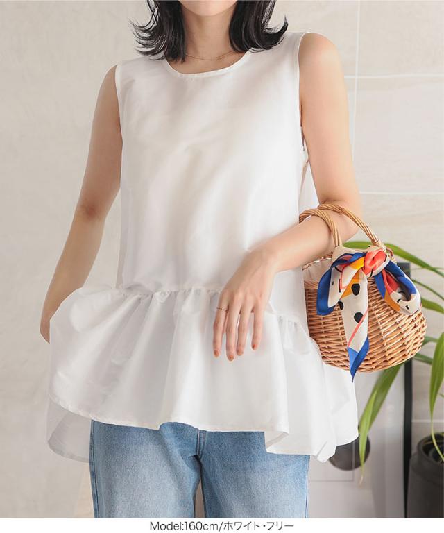 ペプラムボリューミーシャイニーブラウス C7545 入荷済 レディース ノースリーブ トップス ブラウス ペプラム ボリューム ティアード 切替え 裾切替え イレヘムノースリ 丸首 Uネック シアー ラメ 無地 ホワイト ブラック 白 黒 きれ