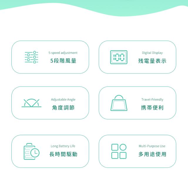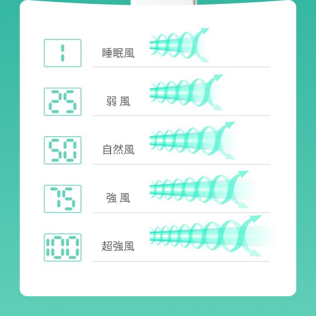 1、使用環境に合わせた風量を選択できるように、5段階の風量調節機能搭載。