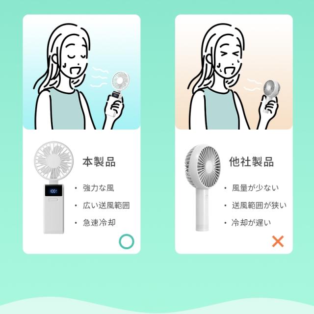 ミニハンディファンで、片手で使用可能、出かけるときに小型の鞄に入れられますので、持ち運び便利です。首掛けストラップ付き、長さも調節可能です。首にかければマスクつけていても、顔がさっぱり。