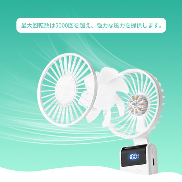 卓上扇風機 首掛けファン ポータブルファン ストラップ付き 小型USB扇風機 薄型 スマホスタンド機能 おしゃれ 静音 コードレス 省エネ 低騒音 卓上小型扇風機 2025年モデル Type-C充電 角度調整 7枚羽根 風量5段階 強力 自然風 残電量表示【PL保険加入済み製品・安心
