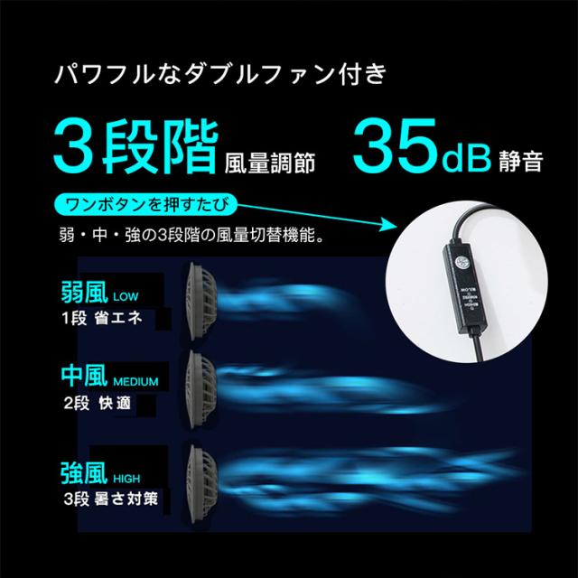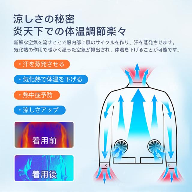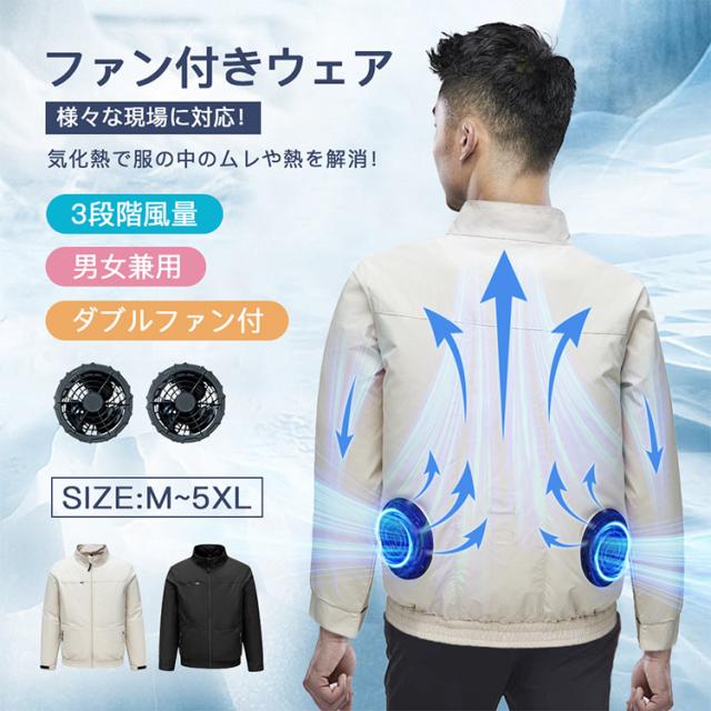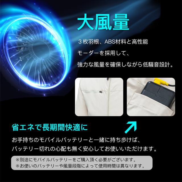 空調作業服 ファン付き 空調ウェア 空調ベスト 扇風機 セット 3段階風量 ダブルファン付 通気 快適 体温調節 熱中症予防 3枚羽根 ABS材料 仕事場 会社 男女兼用