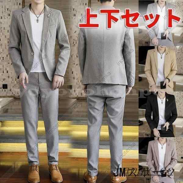 カジュアルスーツメンズセットアップサマースーツおしゃれサマージャケットテーラード長袖スキニーパンツ無地上下紳士服