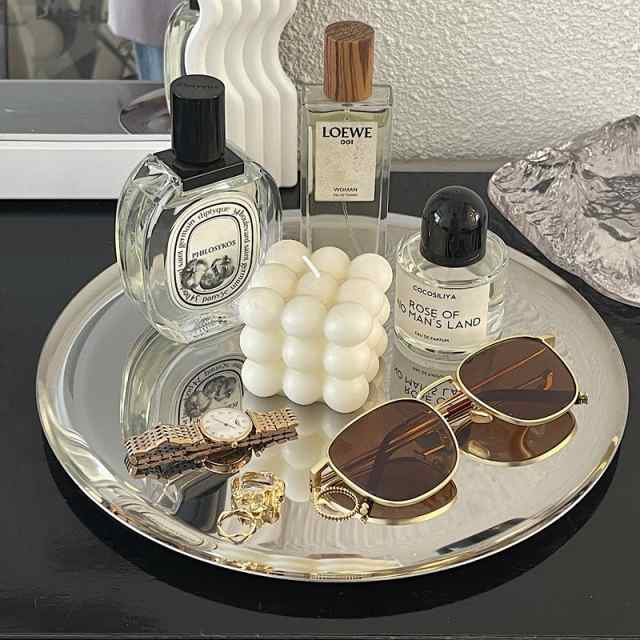 ミラーシルバープレートマルチトレイトレイ韓国雑貨インテリア北欧おしゃれ大きいディスプレイ収納小物入れアクセサリー指輪ピアス鍵化粧品置物アンティークレトロ卓上シンプル丸円ステンレス香水時計