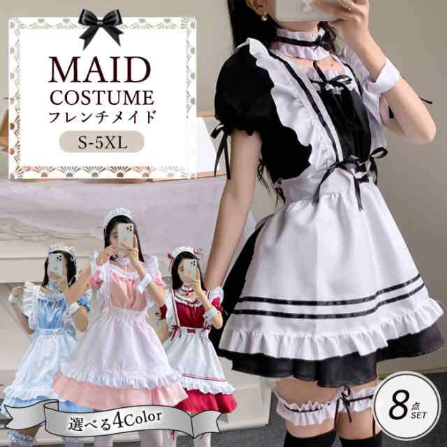 メイド服 コスプレ ハロウィン メイドレディース 仮装 初心者 セット コスチューム定番 ホワイト+ブラック 豪華セット衣装 フルセット カラフル こすぷれ 可愛い 男ウケ セクシー 大きいサイズ 大人 エプロン かわいい リボン ハイウエスト カップル