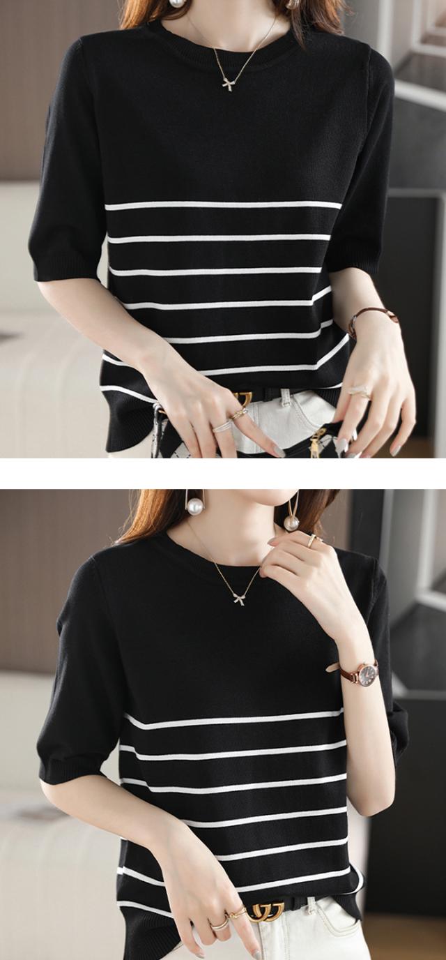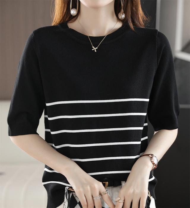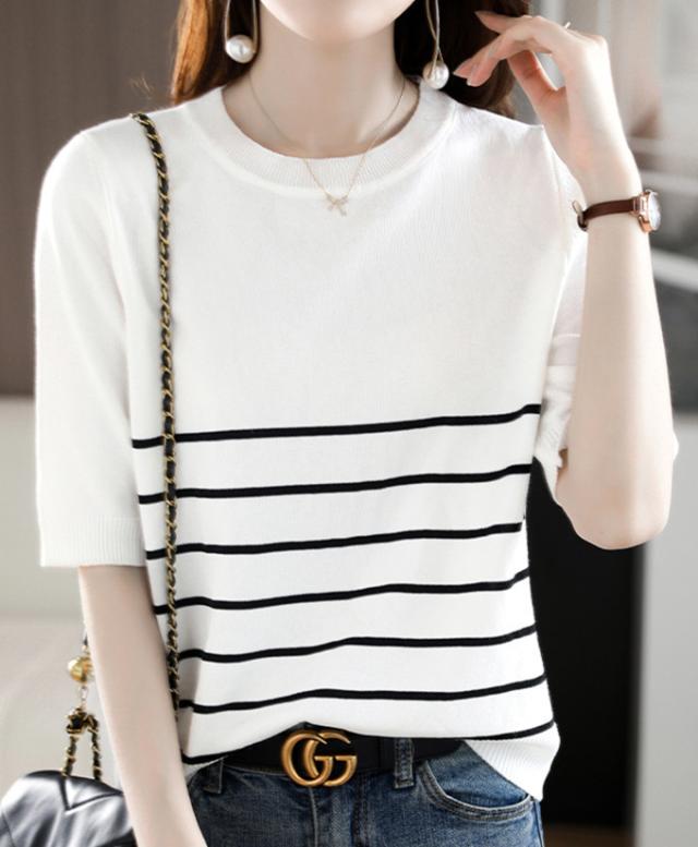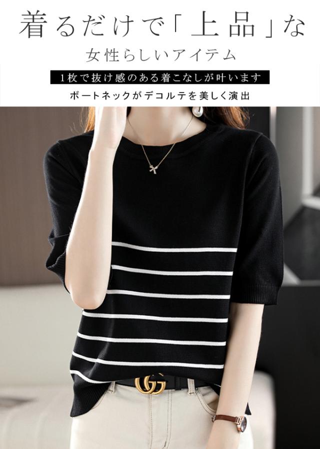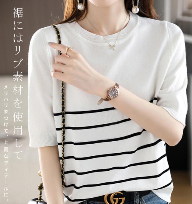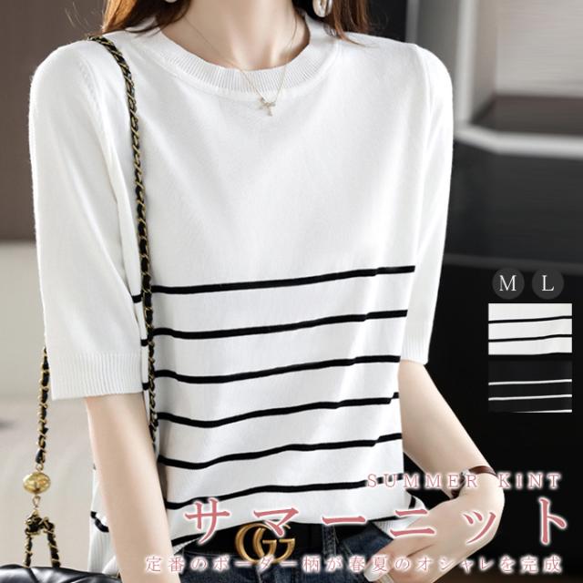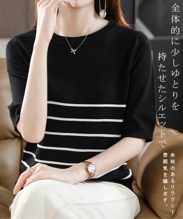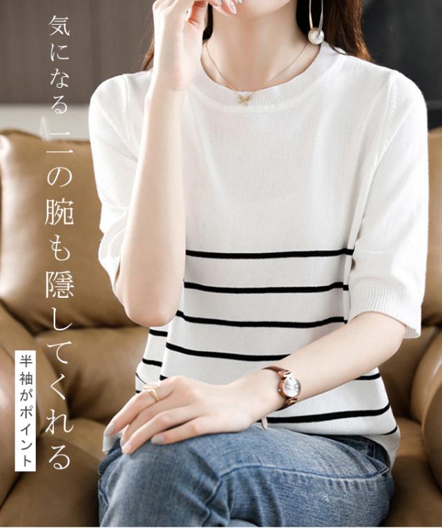 15%OFF, 1683円ボーダー サマーニット レディース 清涼感 トップス プルオーバー クルーネック 爽やかニット ニット セーター ライトニット サマーニット