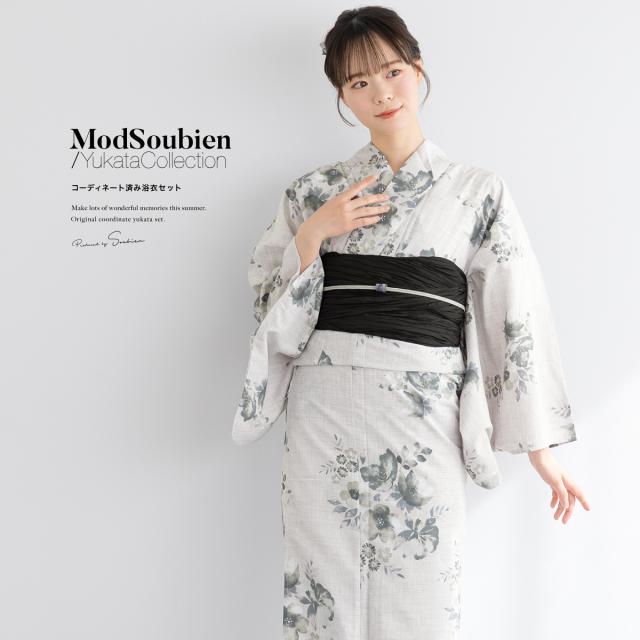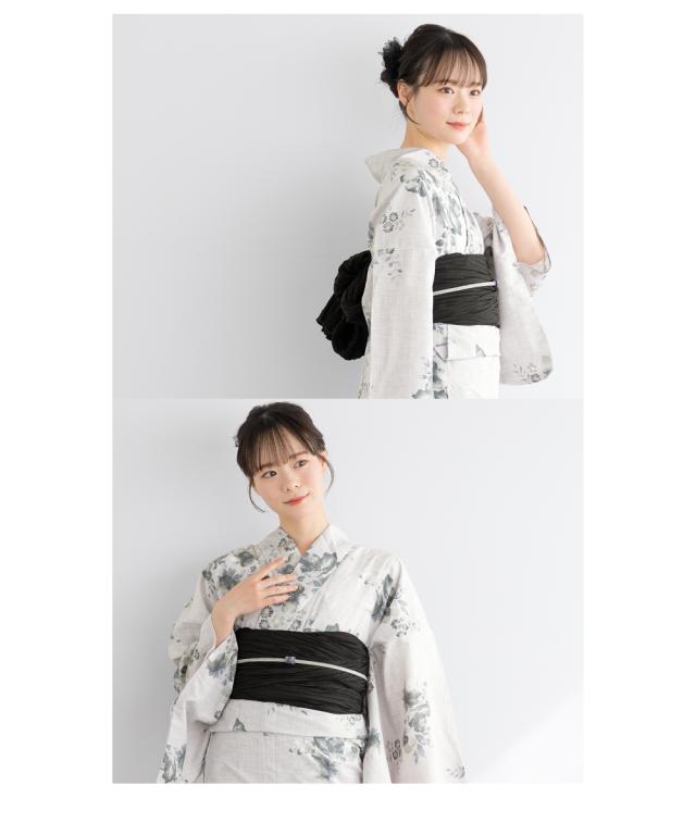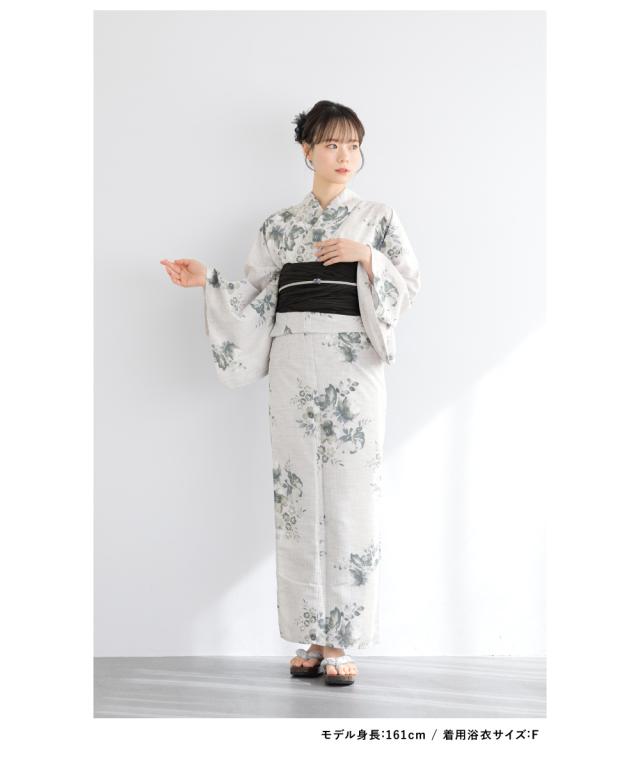 浴衣 セット レディース 浴衣セット 兵児帯 2025 3点セット 黒 薄灰色 グレー くすみカラー 花柄 大人 おしゃれ 可愛い 吸水速乾 帯 下駄 Sサイズ フリーサイズ 送料無料
