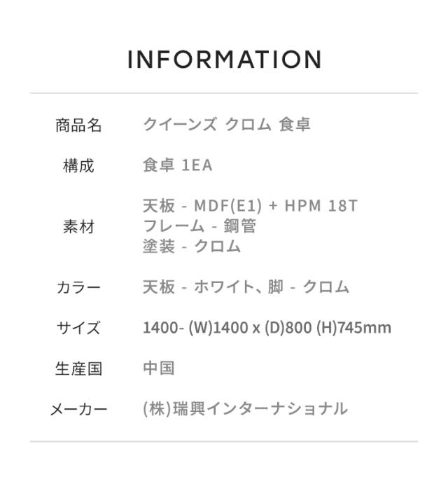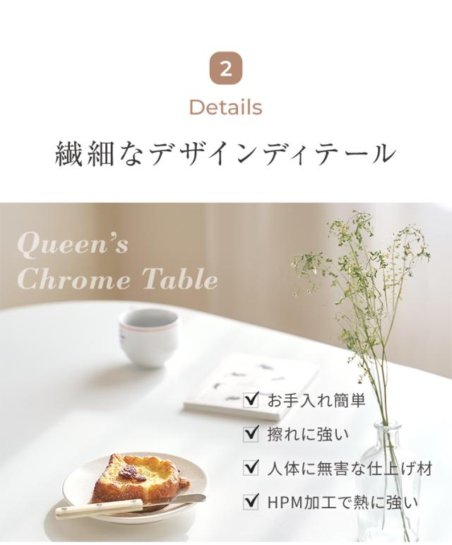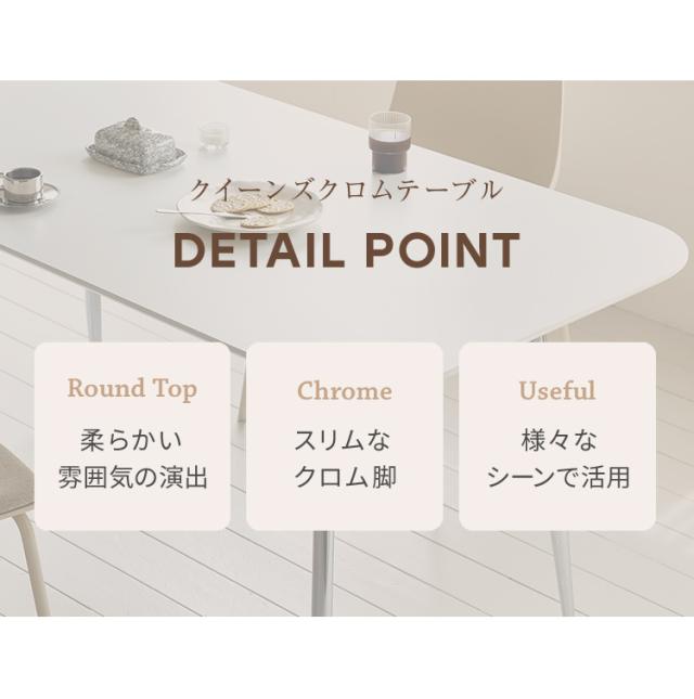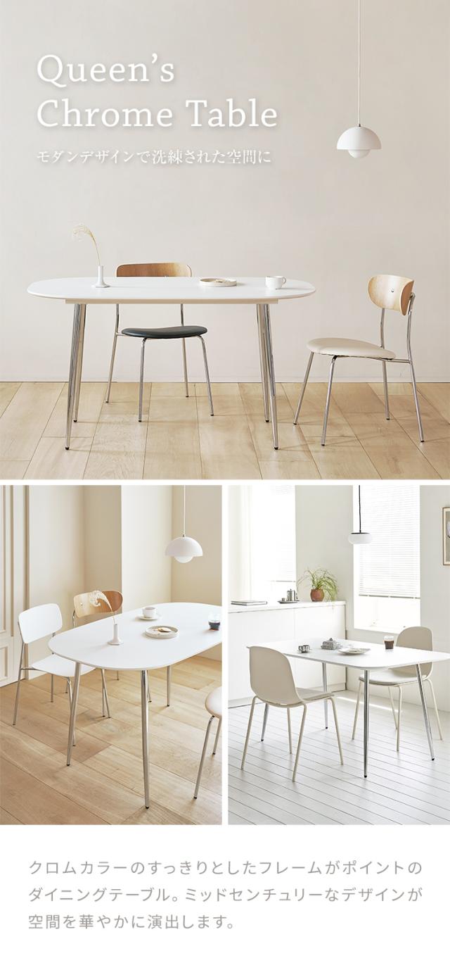 roomnhome ダイニングテーブル 幅140cm 丸型 ホワイト クイーンズ クロムテーブル 韓国インテリア センターテーブル テーブル リビングテーブル コーヒーテーブル【送料無料】