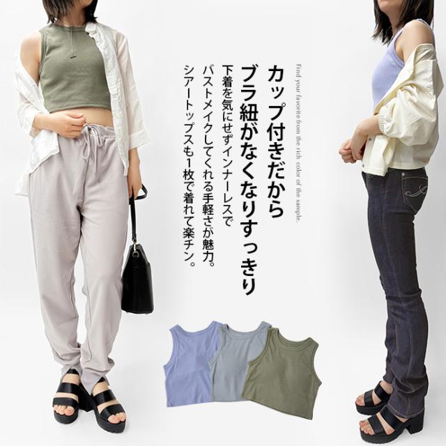 ブラトップ タンクトップ インナー ショート丈 ノンワイヤー カップ付きインナー パッド付きクルーネック ミニ丈 アメリカンスリーブ ノースリーブ テレコリブ 伸縮性 レディース 値下げ セール 送料無料