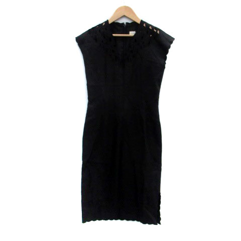 【中古】マダムニコル madame NICOLE ワンピース Vネック フレンチスリーブ ロング丈 ビーズ 黒 ブラック